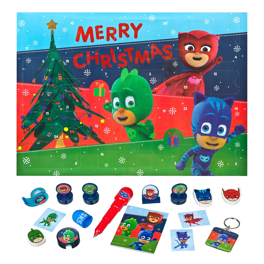Dětský adventní kalendář bez čokolády obsahuje 24 drobností, které dětem zkrátí čekání na Štědrý den. Sada s motivem PJ Masks obsahuje:
