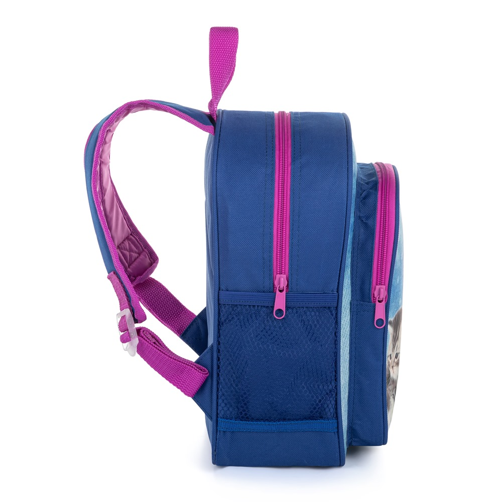 Menší batůžek vhodný pro děti předškolního věku na volnočasové aktivity. Má jednu velkou kapsu, menší kapsu na svačinu a postranní kapsičky na lahev na pití. Ideální pro děti od 3 do 6 let.