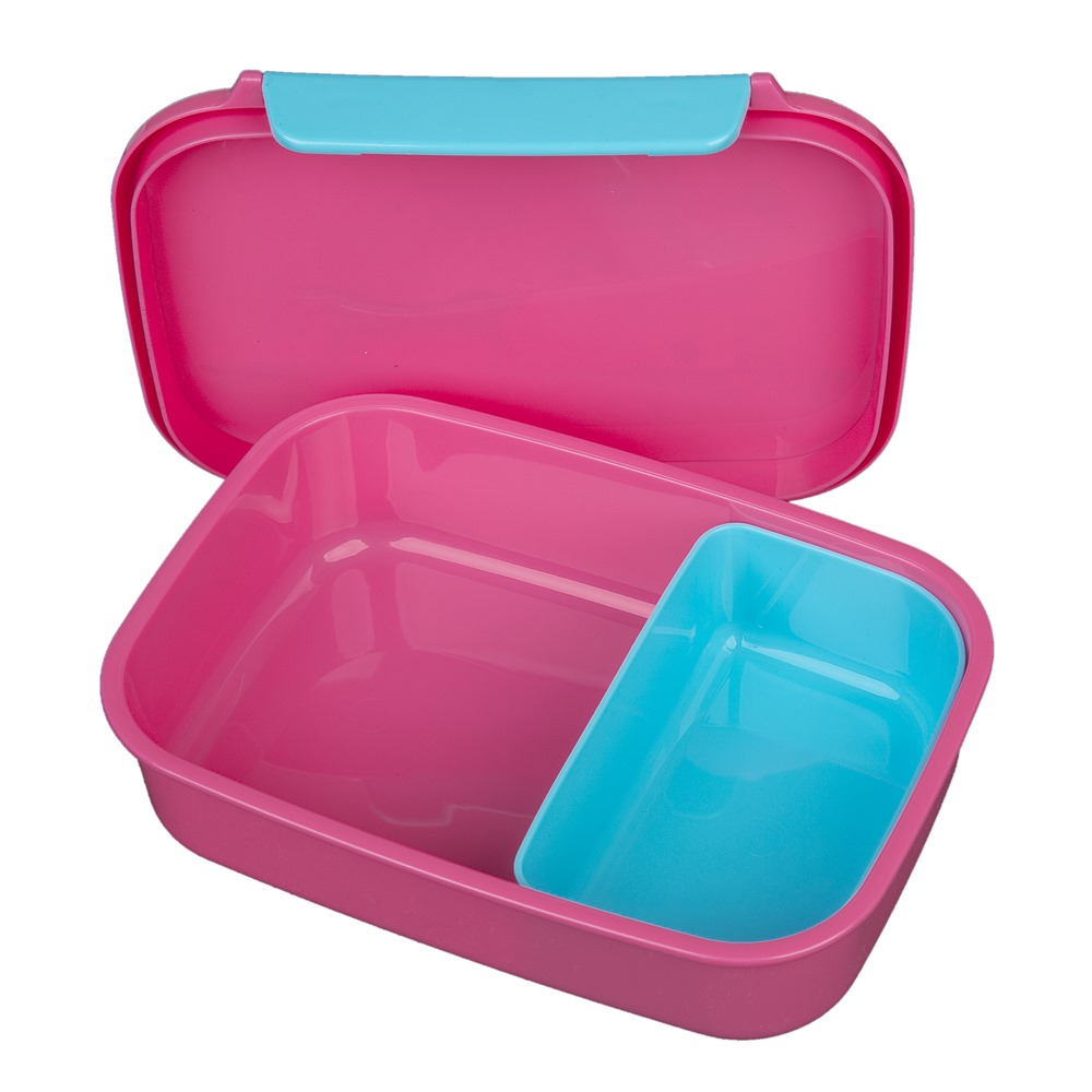 Plastová krabička na svačinu s motivem Peppa Pig, uvnitř s rozdělovací přepážkou. Box není vhodný do myčky ani mikrovlnné trouby.
