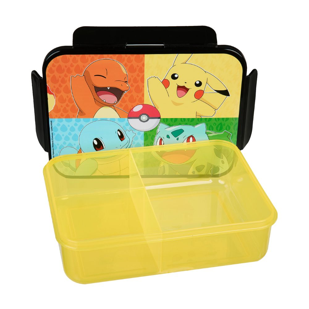 Plastová krabička na svačinu s motivem Pokemon, uvnitř s přepážkou. Box není vhodný do myčky ani mikrovlnné trouby.