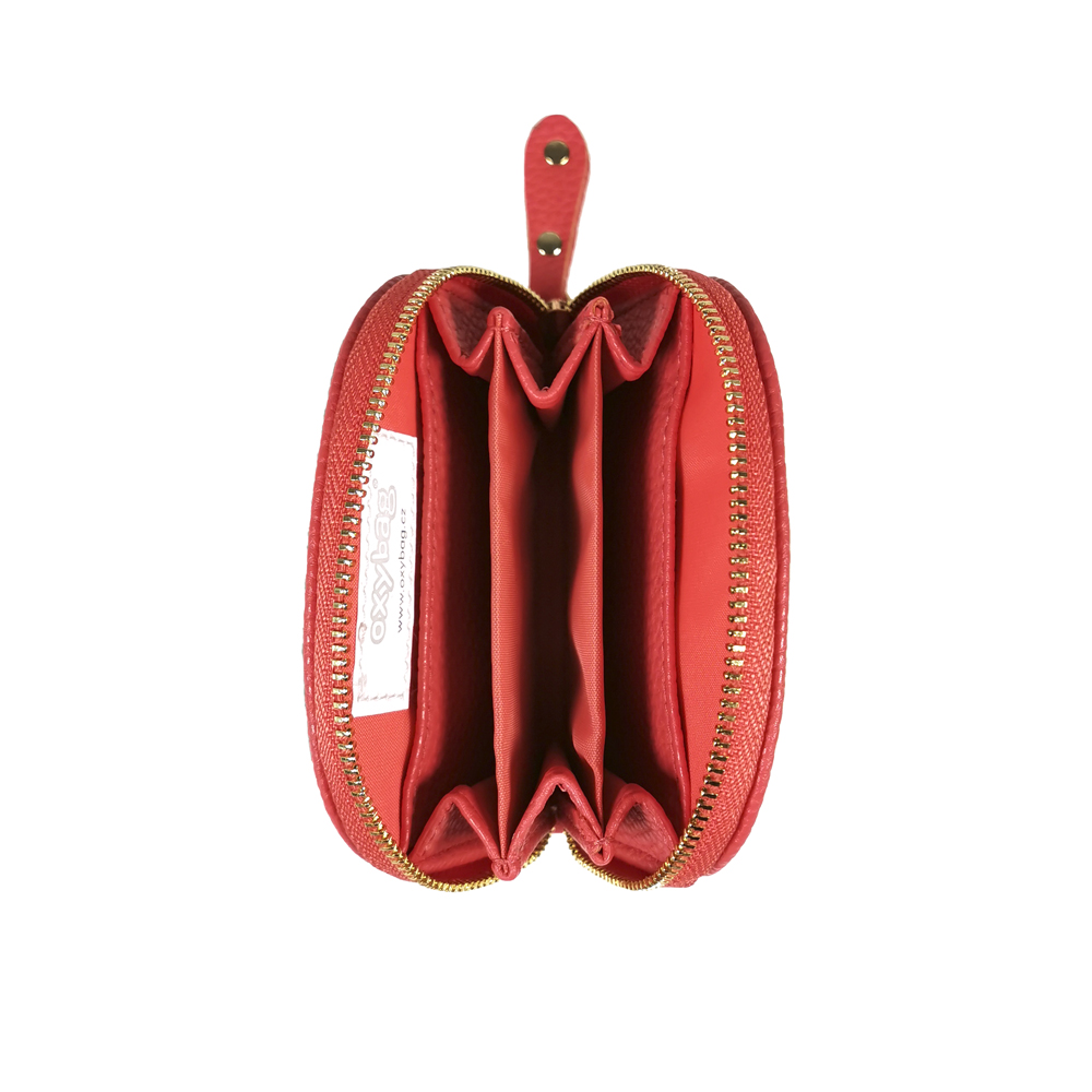 Malá dámská peněženka. Hlavní zipová kapsa má uvnitř 5 oddělených přihrádek na mince a karty.