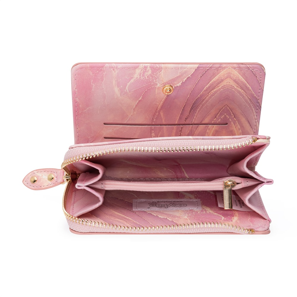 Stylová menší dámská peněženka LAST v elegantním růžovém provedení nabízí nejen atraktivní design, ale i praktické uspořádání pro každodenní potřeby. Uvnitř najdete 10 menších kapes ideálních pro věrnostní karty, 1 větší kapsu, oddělenou přihrádku na hotovost a samostatnou uzavíratelnou kapsu na zip pro drobné mince. Perfektní volba pro ty, kteří hledají praktické a stylové řešení na cesty i do města.