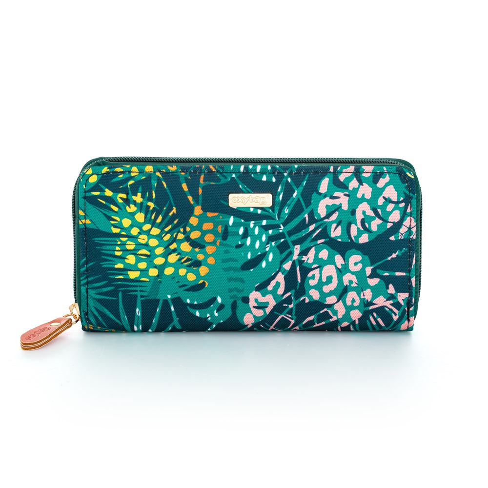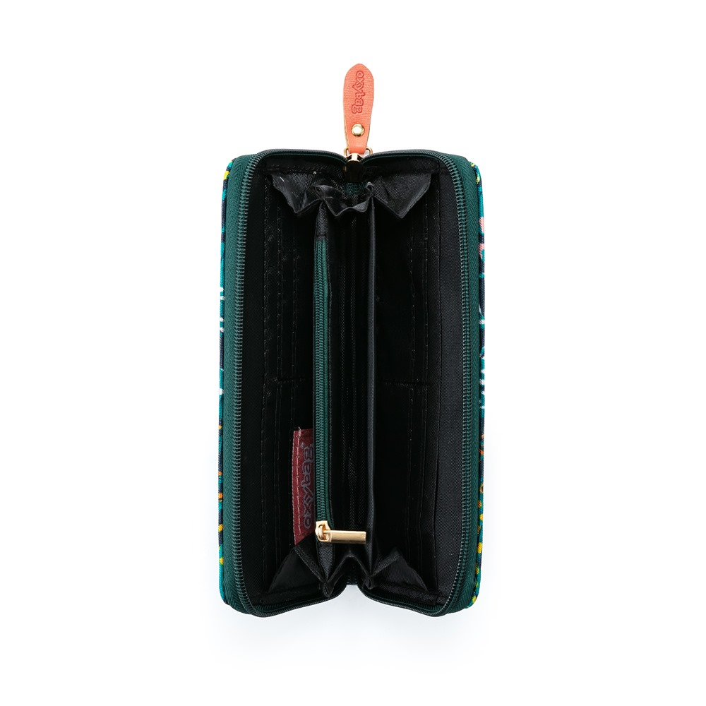 Velká dámská peněženka v barevném provedení. Uvnitř je 8 menších kapes na věrnostní karty, 2 větší kapsy, 3 oddělené přihrádky na hotovost a 1 uzavíratelná kapsa na zip na drobné mince.