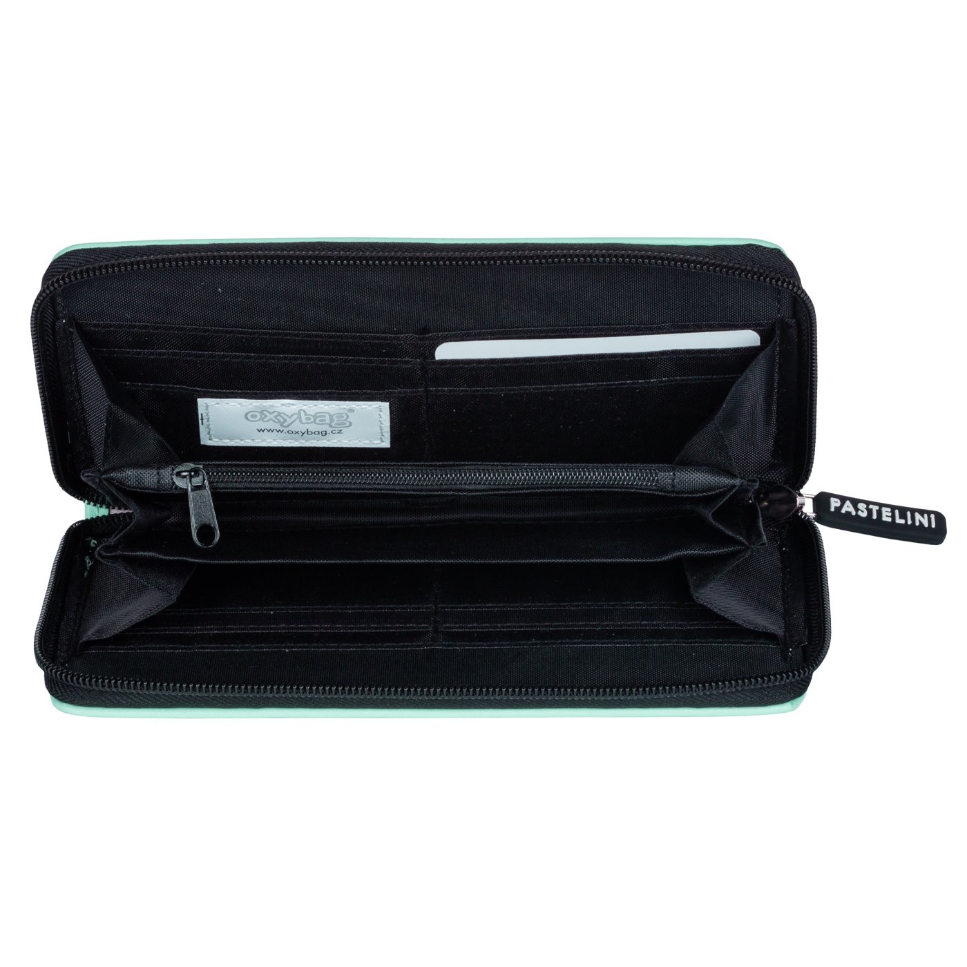 Velká dámská peněženka MONY L v zeleném provedení. Uvnitř je 8 menších kapes na věrnostní karty, 2 větší kapsy, 3 oddělené přihrádky na hotovost a 1 uzavíratelná kapsa na zip na drobné mince.