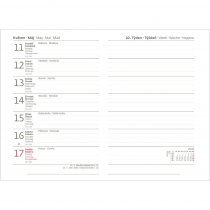 Objevte praktický týdenní diář ve formátu A6 s 128 stranami z kolekce VERDE. Moderní design podtrhuje povrchová úprava Soft touch lamino s UV lakem. Diář obsahuje prostor na osobní údaje, plánovací kalendář na rok 2026, přehledný kalendář na roky 2026/2027, seznam křestních jmen, důležitá telefonní čísla a přehledný měsíční kalendář na období 2026/2027. Nechybí ani prostor na poznámky. Kalendárium zahrnuje jména a státní svátky v češtině a slovenštině, dny a měsíce v pěti jazycích (čeština, slovenština, němčina, angličtina, ruština), počet dnů od začátku do konce roku a měsíční fáze. Praktický design doplňují kulaté rohy a perforace pro snadné odtrhávání stránek. Tento diář je ideální pro každodenní organizaci a plánování, spojuje funkčnost s moderním vzhledem.