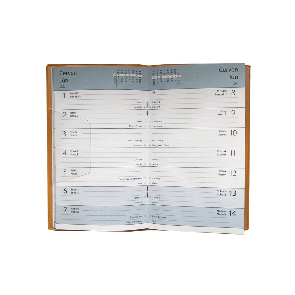 Praktický týdenní diář v odolném PVC obalu, vhodný do tašky či kabelky. Obsahuje 80 stran s týdenním kalendáriem od prosince 2025 do ledna 2027. Zahrnuje čísla týdnů, měsíční fáze, prostor na poznámky a osobní údaje. Ideální pro efektivní plánování a organizaci času.