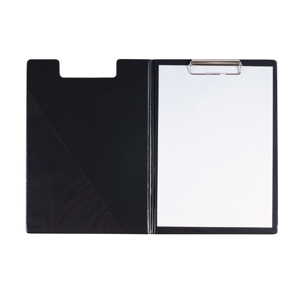 Uzavíratelná psací podložka s kovovým klipem, vyrobena z extra pevné lepenky. Vnitřní průhledná kapsa