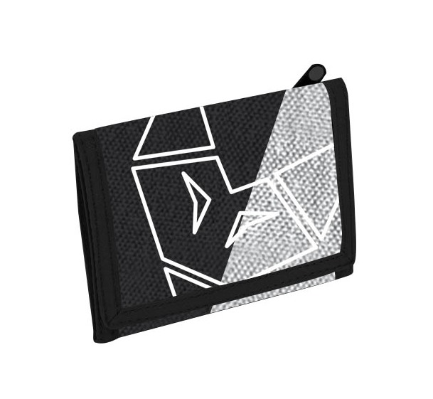 Praktická textilní peněženka na suchý zip. Vzadu je uzavíratelná kapsička na drobné, uvnitř jedna přihrádka na bankovky, šest kapsiček na karty a jedna průhledná kapsa.