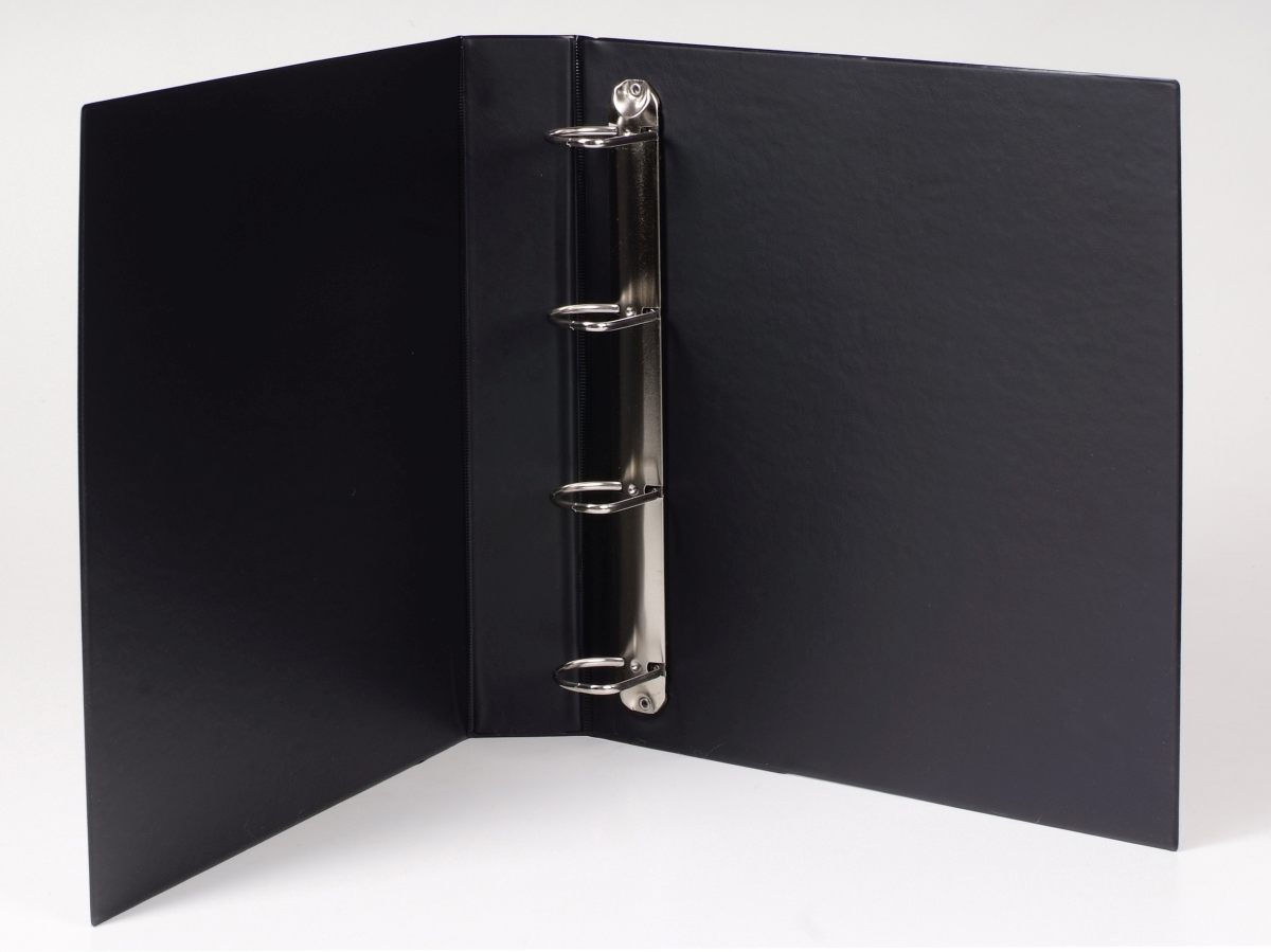 Zakládací pořadač s průhlednou kapsou na přední straně a hřbetu. 4 kroužková mechanika, kroužek má tvar písmene "D"