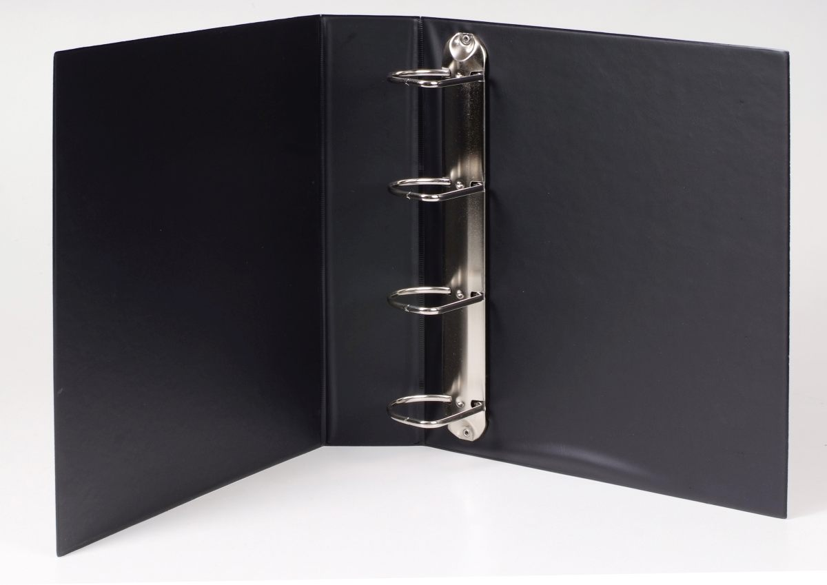 Zakládací pořadač s průhlednou kapsou na přední straně a hřbetu. 4 kroužková mechanika, kroužek má tvar písmene "D"