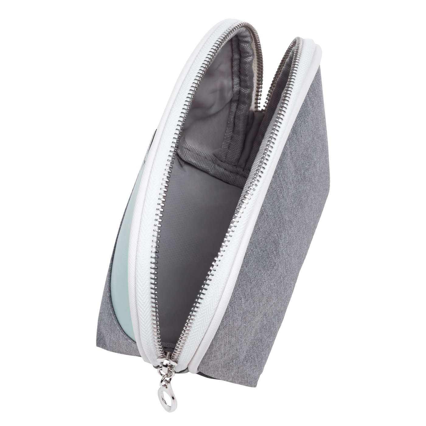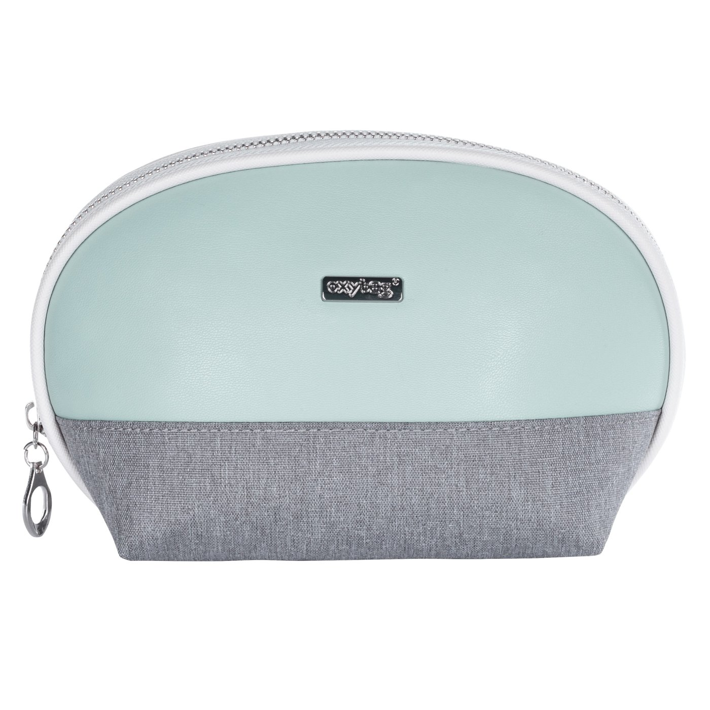 Cestovní kulatá kosmetická taška v šedozeleném provedení. Vhodná k uskladnění toaletních a kosmetických potřeb menší velikosti.