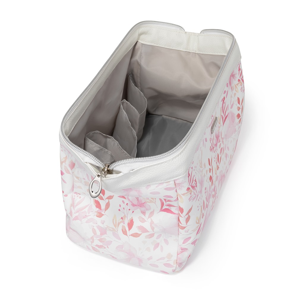 Větší cestovní kosmetická taška v květinovém provedení. Vhodná k uskladnění toaletních a kosmetických potřeb.