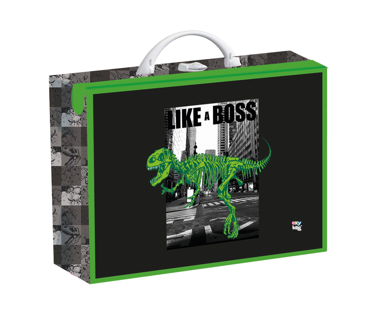 Lamino kufřík na výtvarnou výchovu. Do kufříku se vejde formát A4. Materiál: papír, lepenka, plastový úchyt a zámeček, kovové nýty.