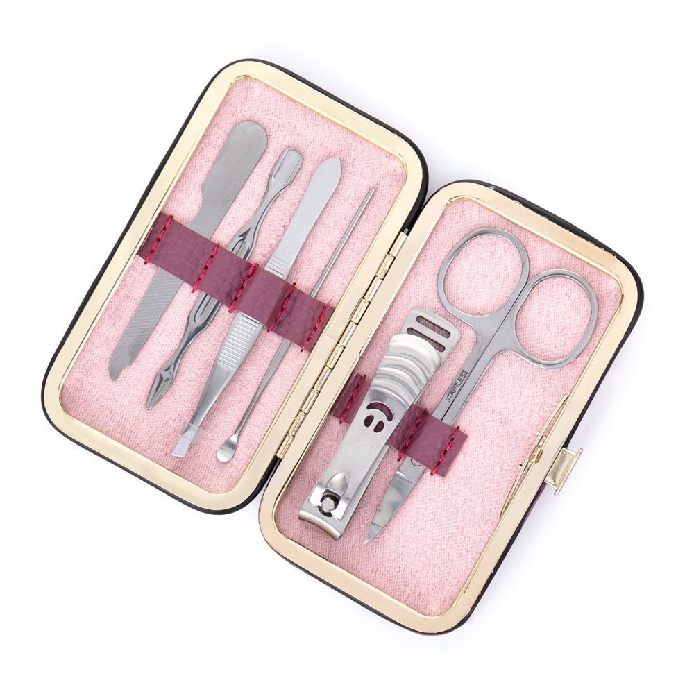Cestovní manikúrní set 6 ks. Stříbrná sada obsahuje nůžky, kleštičky na nehty, zkosenou pinzetu, pilník, manikúrní tyčinku a zatlačovač kůžičky. Ideální velikost do kabelky či na cesty. Rozměry: 11 x 6,5 x 1,5 cm