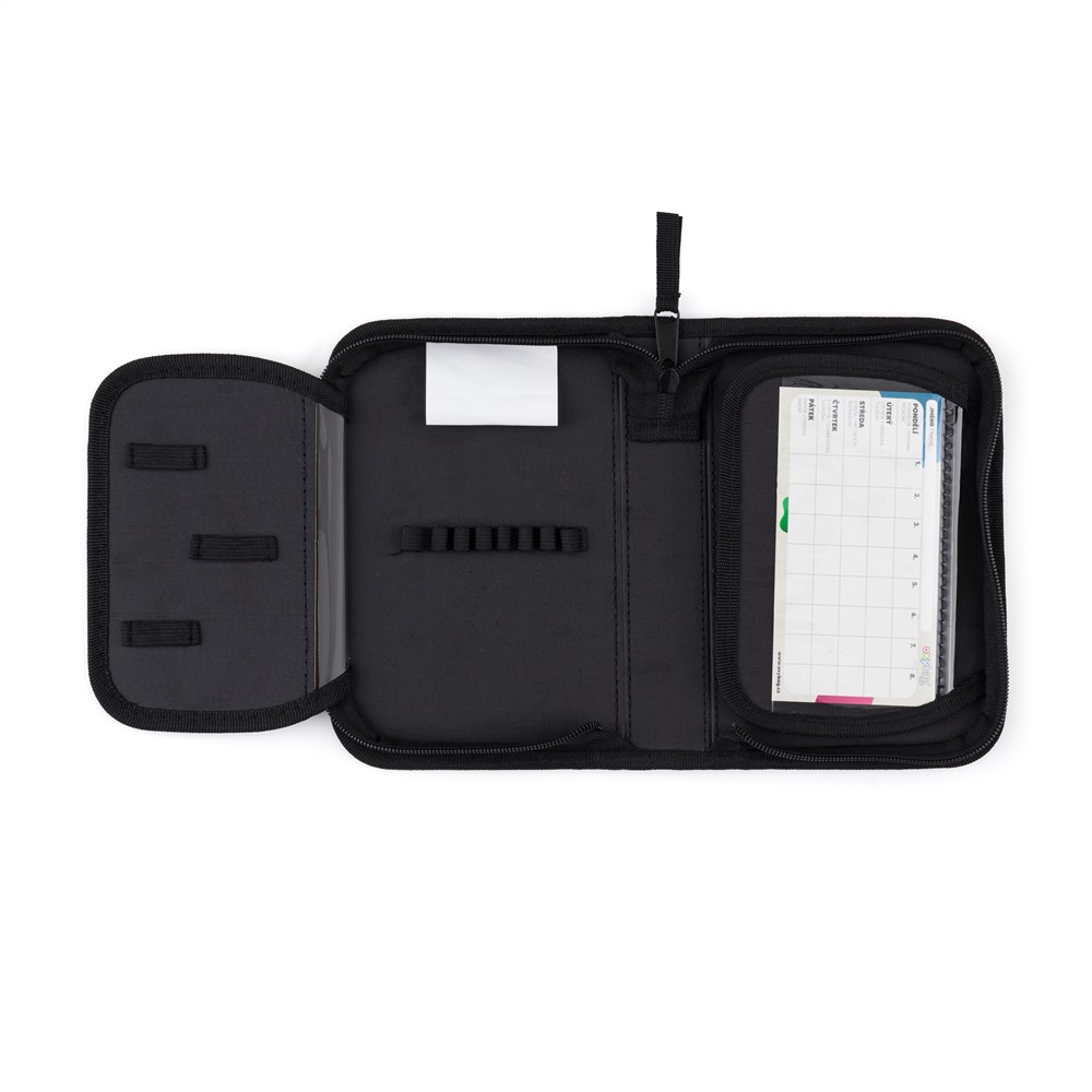 Jednopatrový školní penál s 2 chlopněmi řady UNICOLOR, prázdný, obsahuje 25 gumových poutek pro uchycení psacích potřeb. Na vnitřních chlopních jsou průhledné fólie pro rozvrh hodin.