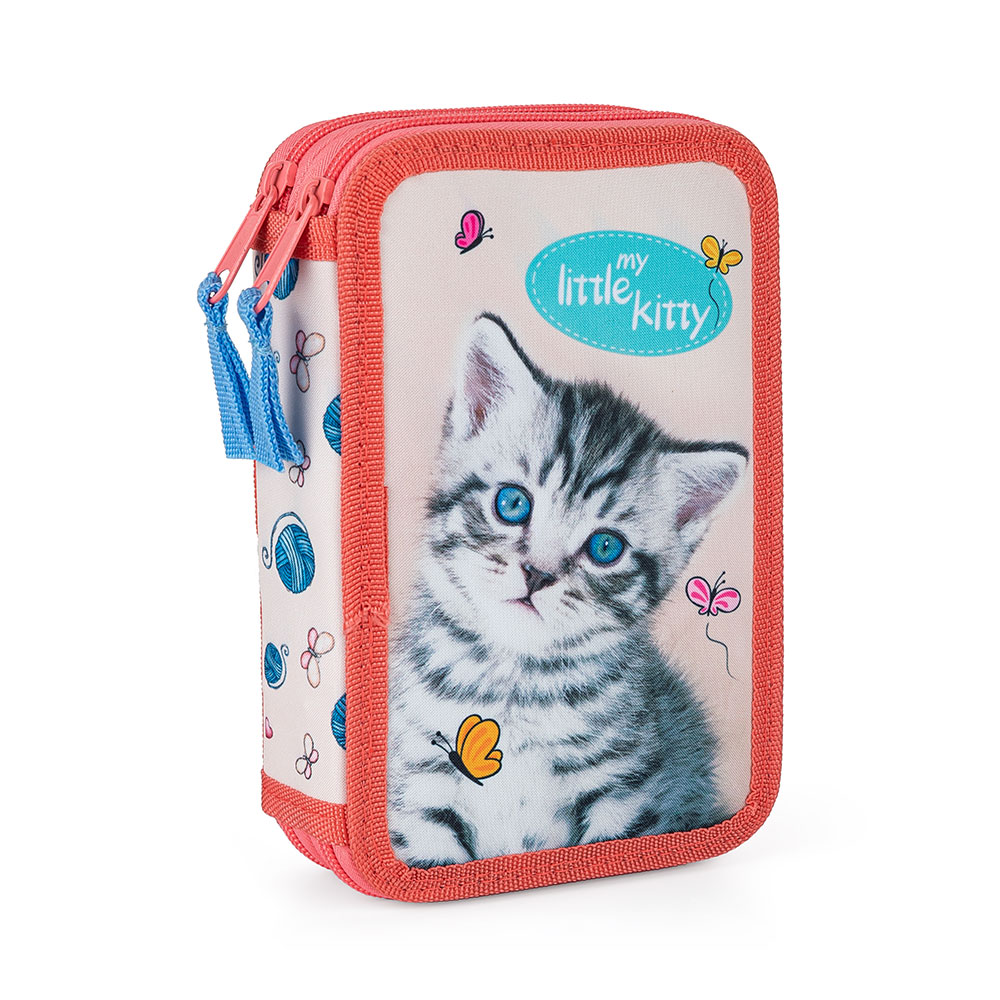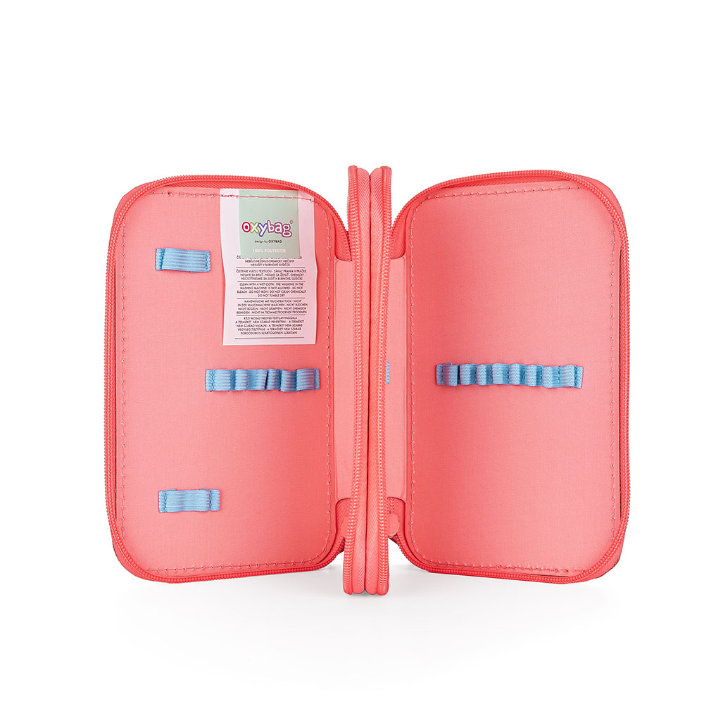 Školní penál dvoupatrový bez náplně. Penál obsahuje 25 gumových poutek pro uložení všech psacích potřeba a drobností potřebných k výuce. Penál má pevný zip s velkými taháčky pro snadnou manipulaci. Jedno patro je opatřeno průhlednou přihrádkou pro týdenní rozvrh.