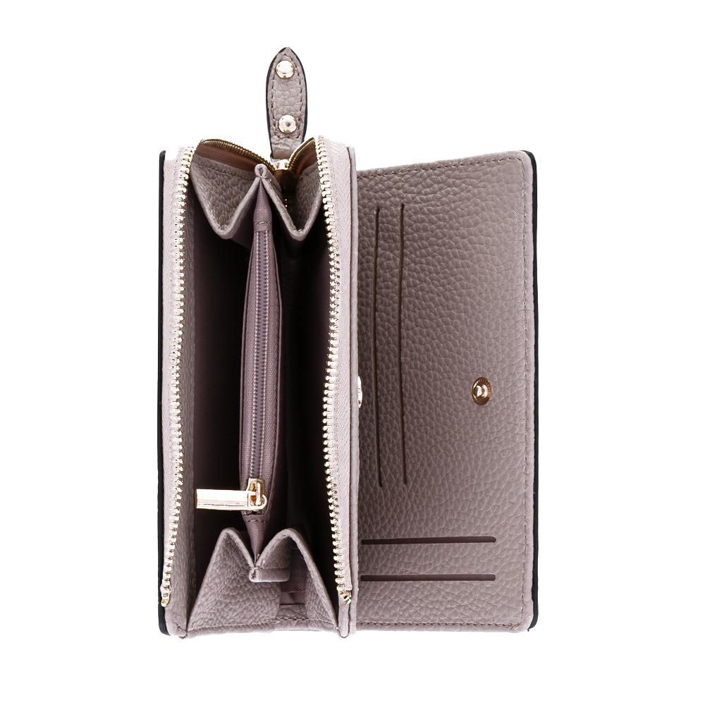 Menší dámská peněženka LAST. Uvnitř je 10 menších kapes na věrnostní karty, 1 větší kapsa, 1 oddělená přihrádka na hotovost a oddělená uzavíratelná kapsa na zip na drobné mince.