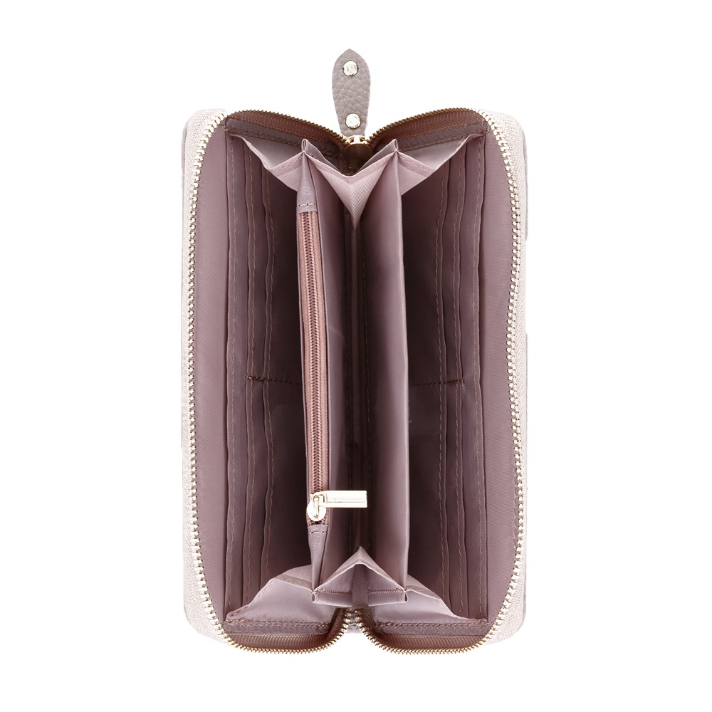 Velká dámská peněženka MONY L v béžovém provedení. Uvnitř je 8 menších kapes na věrnostní karty, 2 větší kapsy, 3 oddělené přihrádky na hotovost a 1 uzavíratelná kapsa na zip na drobné mince.
