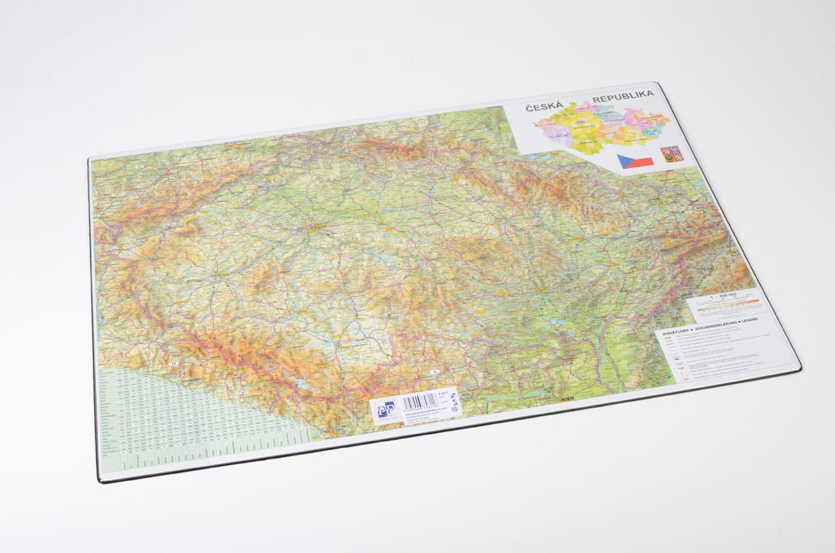 Praktická podložka na stůl, lehce omyvatelná, oboustranná, s mapou České Republiky a Evropy.