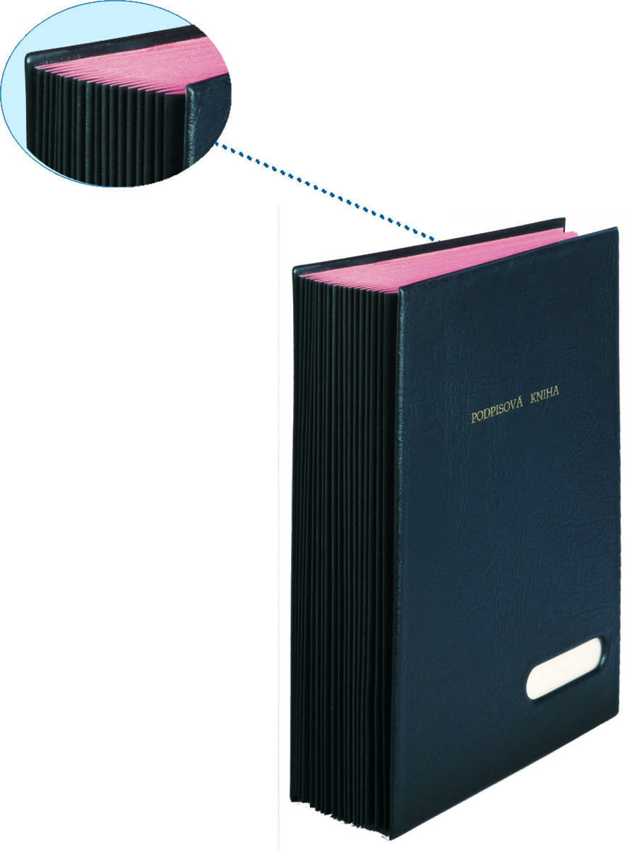 Slouží k organizaci dokumentů, které tak zůstanou vždy čisté a chráněné. Kniha má pružný plátěný hřbet a 14 vnitřních dělících listů.