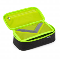 Školní pouzdro etue OXY Jumbo v černozeleném provedení. Školní pouzdro je opatřeno pevnými zipy, uzavíratelnou kapsičkou na zip, přihrádkou na pravítko a klopou s šesti poutky na psací potřeby. Pod klopou je místo pro volné uložení psacích potřeb nebo jiných drobností. Vhodné pro školáky na 2. stupni a starší studenty.