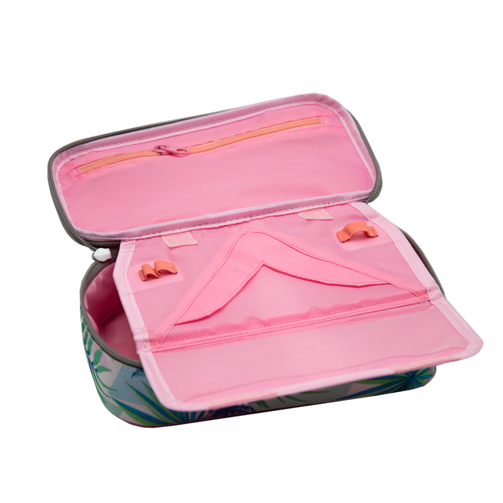 Školní pouzdro je opatřeno pevnými zipy, uzavíratelnou kapsičkou na zip, přihrádkou na pravítko a klopou s šesti poutky na psací potřeby. Pod klopou je místo pro volné uložení psacích potřeb nebo jiných drobností. Vhodné pro školáky na 2. stupni a starší studenty.
