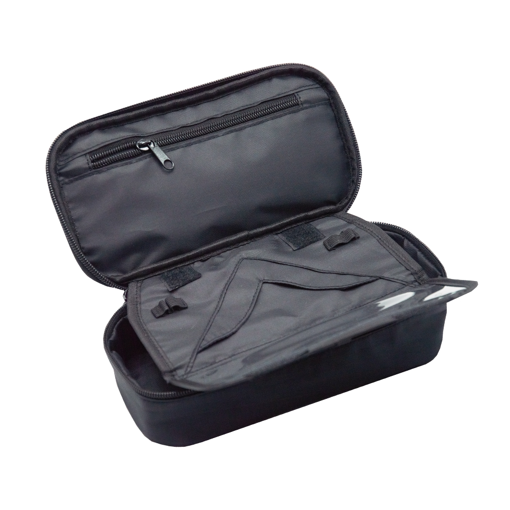 Školní pouzdro je opatřeno pevnými zipy, uzavíratelnou kapsičkou na zip, přihrádkou na pravítko a klopou s šesti poutky na psací potřeby. Pod klopou je místo pro volné uložení psacích potřeb nebo jiných drobností. Vhodné pro školáky na 2. stupni a starší studenty.