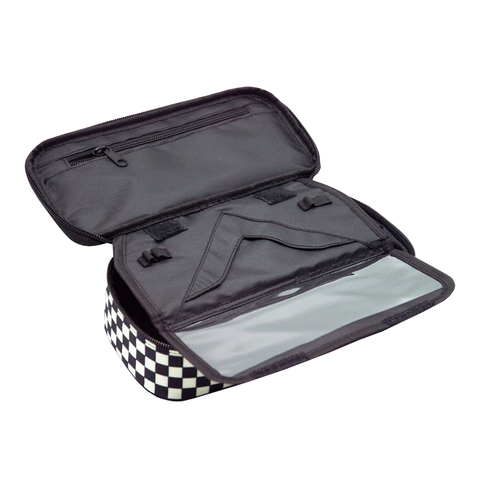 Školní pouzdro je opatřeno pevnými zipy, uzavíratelnou kapsičkou na zip, přihrádkou na pravítko a klopou s šesti poutky na psací potřeby. Pod klopou je místo pro volné uložení psacích potřeb nebo jiných drobností. Vhodné pro školáky na 2. stupni a starší studenty.