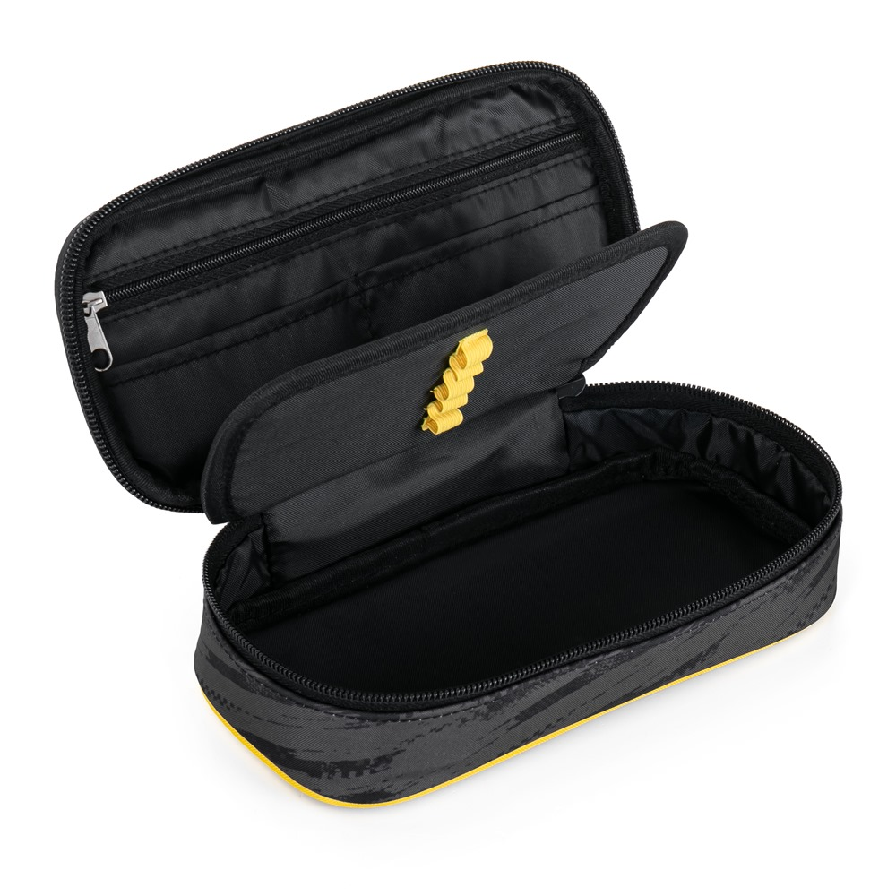 Školní pouzdro etue je opatřeno pevnými zipy, kapsičkou na zip a klopou s pevnými poutky po obou stranách. Pod klopou je místo pro volné uložení psacích potřeb nebo jiných drobností. Vhodné pro školáky na 2. stupni a starší studenty.
