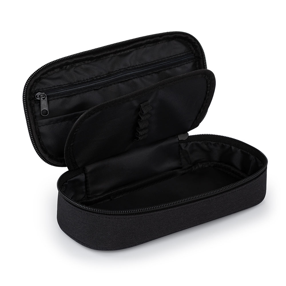 Školní pouzdro etue je opatřeno pevnými zipy, kapsičkou na zip a klopou s pevnými poutky po obou stranách. Pod klopou je místo pro volné uložení psacích potřeb nebo jiných drobností. Vhodné pro školáky na 2. stupni a starší studenty.