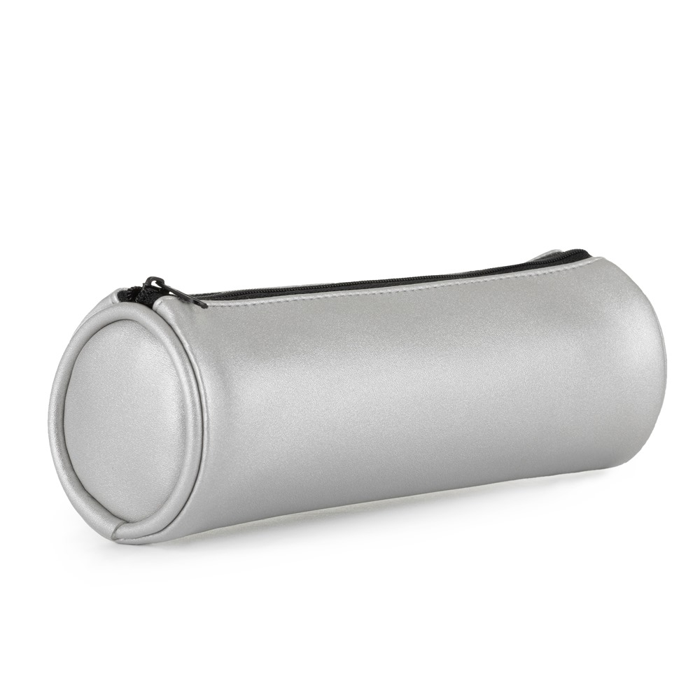 Studentské pouzdro na psací potřeby, uzavírání na zip. Materiál 100% polyuretan. Stříbrná barva s metalickým efektem