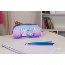 Stylové školní pouzdro etue s motivem oblíbené postavičky Stitch z odolného polyesteru se zipem. Ideální na tužky, pera i další školní nezbytnosti.