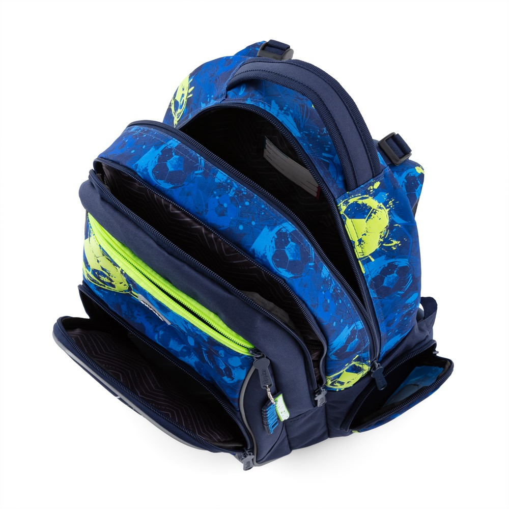 Školní batoh OXY GO zaujme moderním designem a promyšlenou funkčností. Má anatomicky tvarovaná, prodyšná záda a nastavitelné ramenní popruhy pro pohodlné nošení. Přidané háčky umožňují uchycení dlouhých popruhů. Vnitřní kapsy nabízí dostatek místa na učebnice, sešity i další potřeby, pevné nepromokavé dno chrání obsah před ušpiněním a protečením. Boční kapsy, jedna na zip a jedna otevřená, slouží např. na láhev. Reflexní prvky zajišťují bezpečnost. Batoh je ideální pro děti od 1. do 3. třídy vysoké od 125 cm. Délka zádového panelu je 39 cm, objem 22 l, hmotnost 930 g, nosnost 8 kg. Sáček: Praktický na cvičky nebo volnočasové aktivity, uzavírá se šňůrkami. Penál: Jednopatrový se dvěma chlopněmi, poutka na psací potřeby a průhledná fólie na rozvrh hodin.