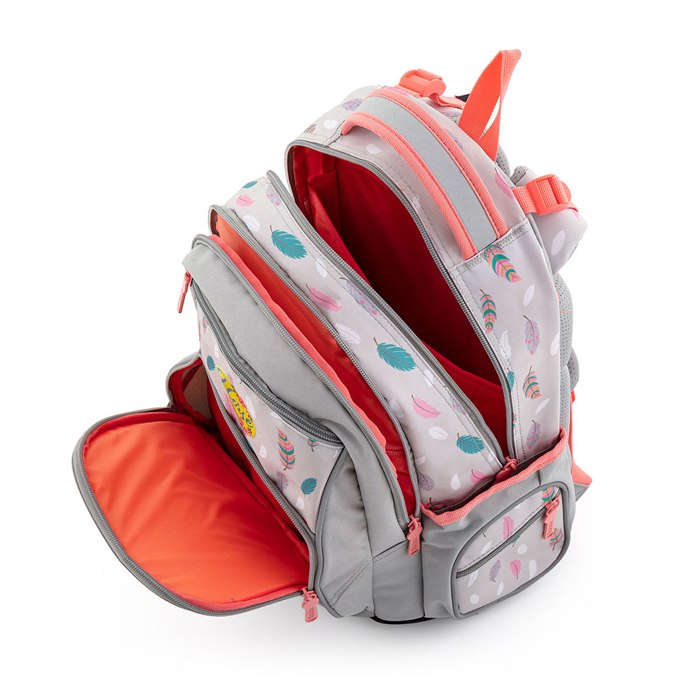 Školní batoh z řady OXY GO: Tvar batohu ukrývá nejen anatomicky tvarovaná a prodyšná záda, ale také možnost nastavit si ramenní popruhy pro lepší pohodlí a komfortnější nošení. Pevné dno zabraňuje jak ušpinění zvenku, tak protečení čehokoliv, co se vylije uvnitř. Dvě hlavní vnitřní kapsy nabízí dostatek prostoru. Batoh nabízí velkorysé množství nejrůznějších kapes, ať už velkých nebo i malých. Lehký, přitom dostatečně velký pro všechny věci. Na batohu nechybějí reflexní prvky. Batoh je ideální na první stupeň pro 1. - 3. třídu pro děti vysoké od 125 cm. Penál: Jednopatrový školní penál s 2 chlopněmi, prázdný obsahuje 25 gumových poutek pro uchycení psacích potřeb. Na vnitřních chlopních jsou průhledné fólie pro rozvrh hodin. Sáček: Sáček na přezůvky. Uzavírání stažením šňůrek, možnost nosit i na zádech nebo připevnit ke školnímu batohu. Materiál 100% polyester.