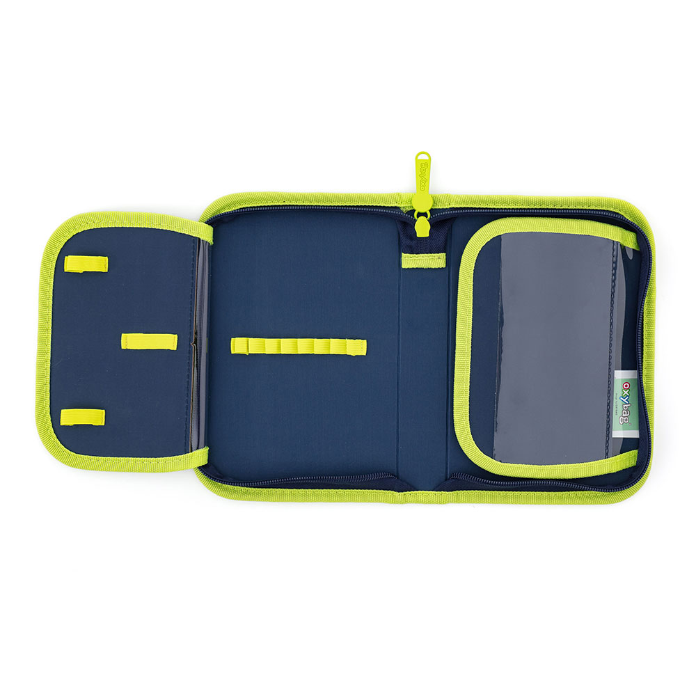 Školní batoh z řady OXY GO: Tvar batohu ukrývá nejen anatomicky tvarovaná a prodyšná záda, ale také možnost nastavit si ramenní popruhy pro lepší pohodlí a komfortnější nošení. Pevné dno zabraňuje jak ušpinění zvenku, tak protečení čehokoliv, co se vylije uvnitř. Dvě hlavní vnitřní kapsy nabízí dostatek prostoru. Batoh nabízí velkorysé množství nejrůznějších kapes, ať už velkých nebo i malých. Lehký, přitom dostatečně velký pro všechny věci. Na batohu nechybějí reflexní prvky. Batoh je ideální na první stupeň pro 1. - 3. třídu pro děti vysoké od 125 cm. Penál: Jednopatrový školní penál s 2 chlopněmi, prázdný obsahuje 25 gumových poutek pro uchycení psacích potřeb. Na vnitřních chlopních jsou průhledné fólie pro rozvrh hodin. Sáček: Sáček na přezůvky. Uzavírání stažením šňůrek, možnost nosit i na zádech nebo připevnit ke školnímu batohu. Materiál 100% polyester.