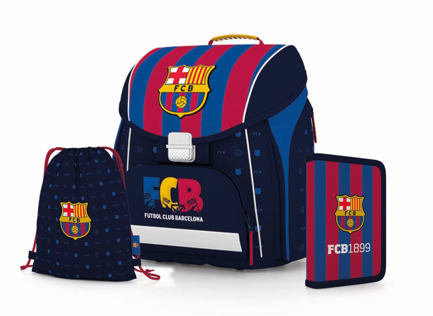 Školní set pro prvňáčka s motivem sportovního klubu FC Barcelona. Set obsahuje školní batoh Premium, sáček na cvičky a nenaplněný jednopatrový penál.