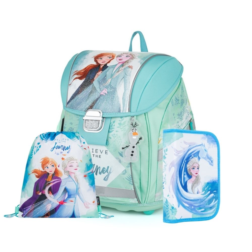 Školní set pro prvňáčka s motivem Ledového království. Set obsahuje školní batoh Premium Light, sáček na cvičky a nenaplněný jednopatrový penál.