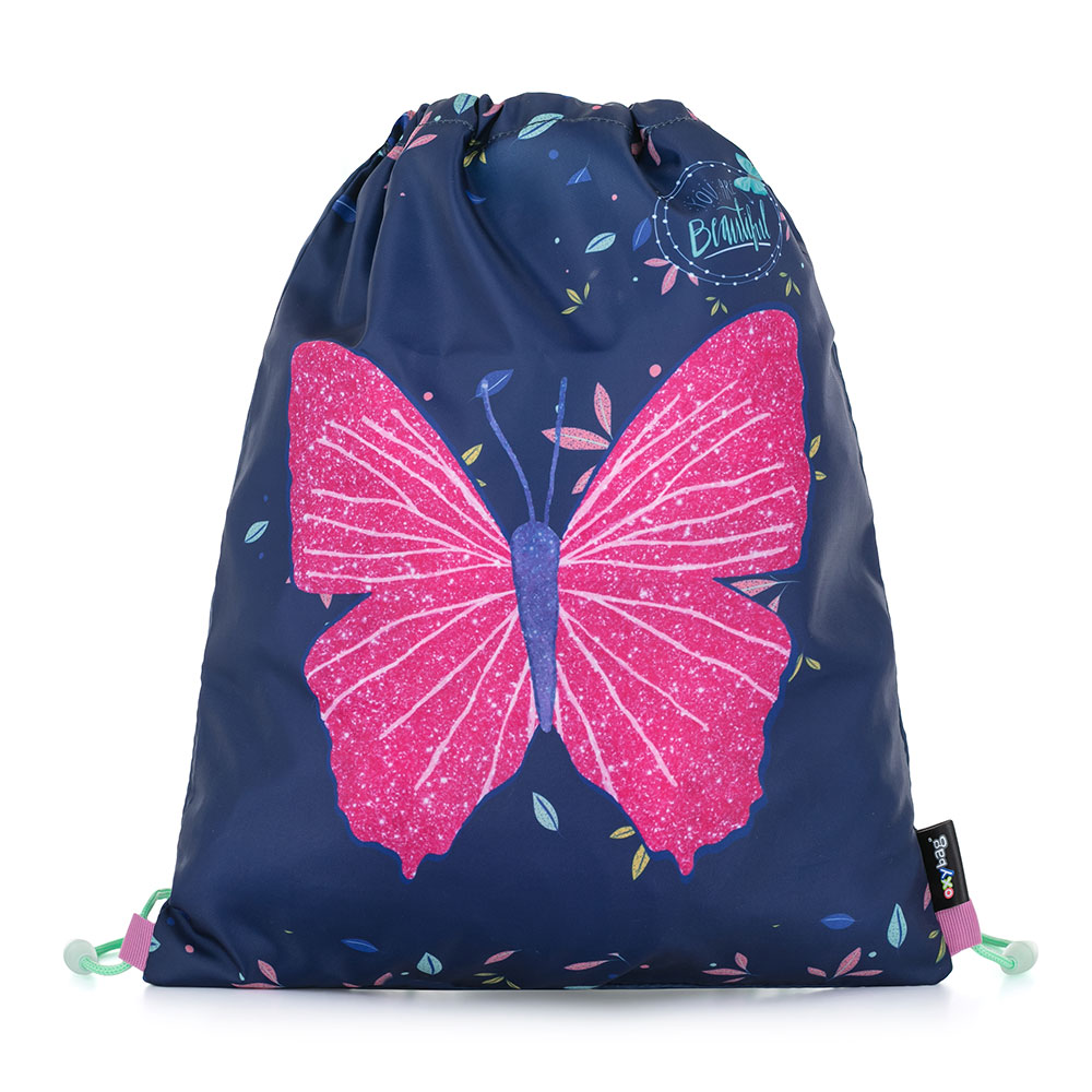 Školní set pro prvňáčka s motivem motýla. Set obsahuje školní batoh Premium, sáček na cvičky a nenaplněný jednopatrový penál.