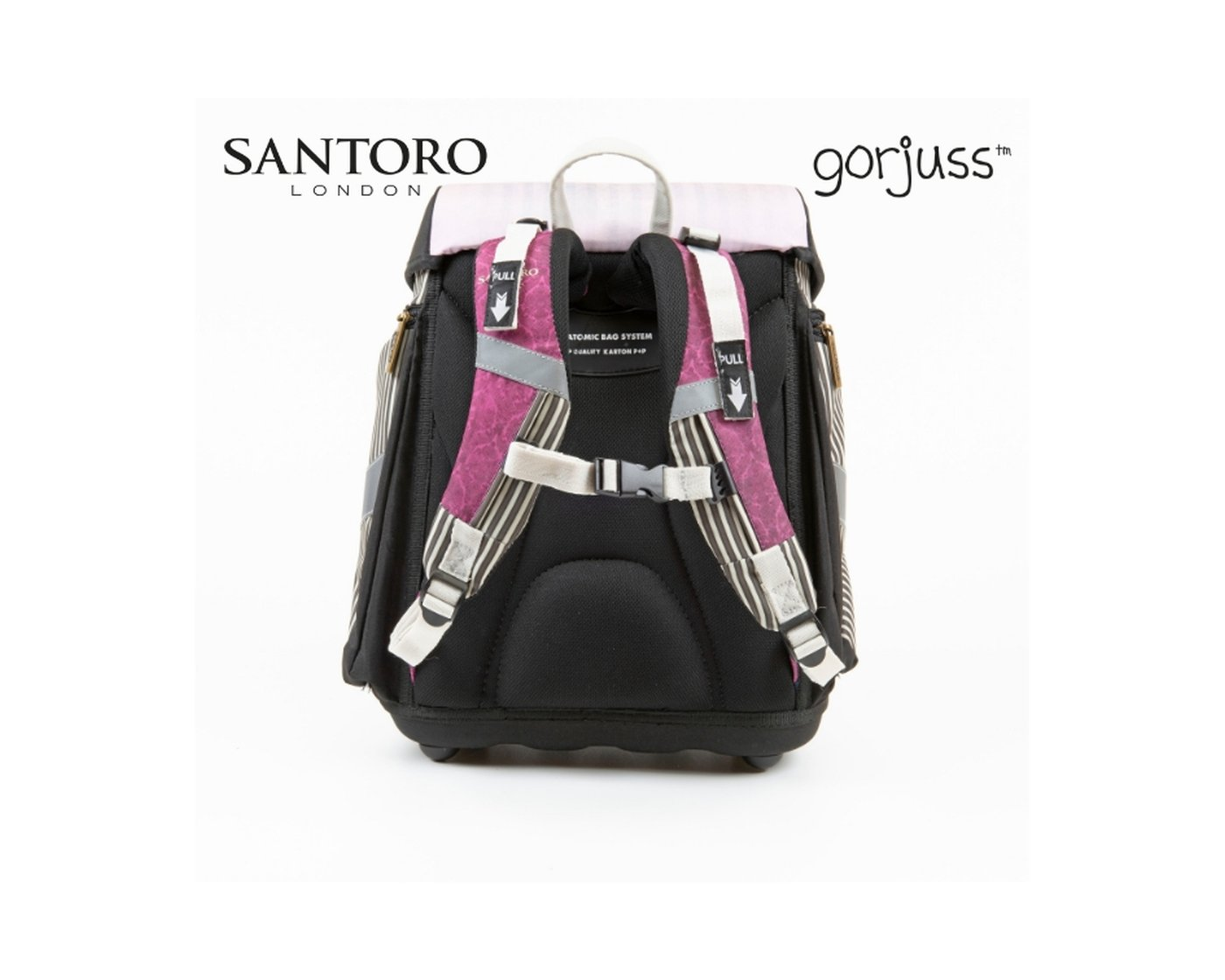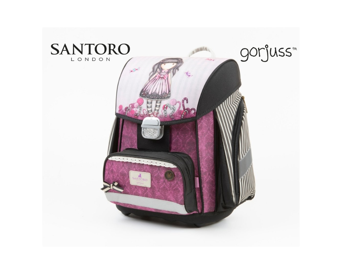 Aktovka: Školní aktovka z řady Premium s motivem Santoro Sugar And Spice je anatomicky tvarovaná a zajišťuje tak správné usazení na zádech. Vyztužená záda a vnitřní výztuha udržují stálý tvar batohu. Polstrování je z příjemného prodyšného materiálu, široké měkčené popruhy jsou navrženy tak, aby dokonale přilnuly a rovnoměrně zatížily ramena dítěte. Aktovka se skládá z jedné prostorné komory, kam se pohodlně vejdou všechny školní pomůcky pro děti v 1. a ve 2. třídě. Dno batohu je z pevného materiálu, chrání tím obsah před převržením a vysypáním. Zapínání je na bezpečnostní přezku. Přední kapsička je určena na svačinu, nechybí řada reflexních prvků, díky kterým je aktovka viditelnější.