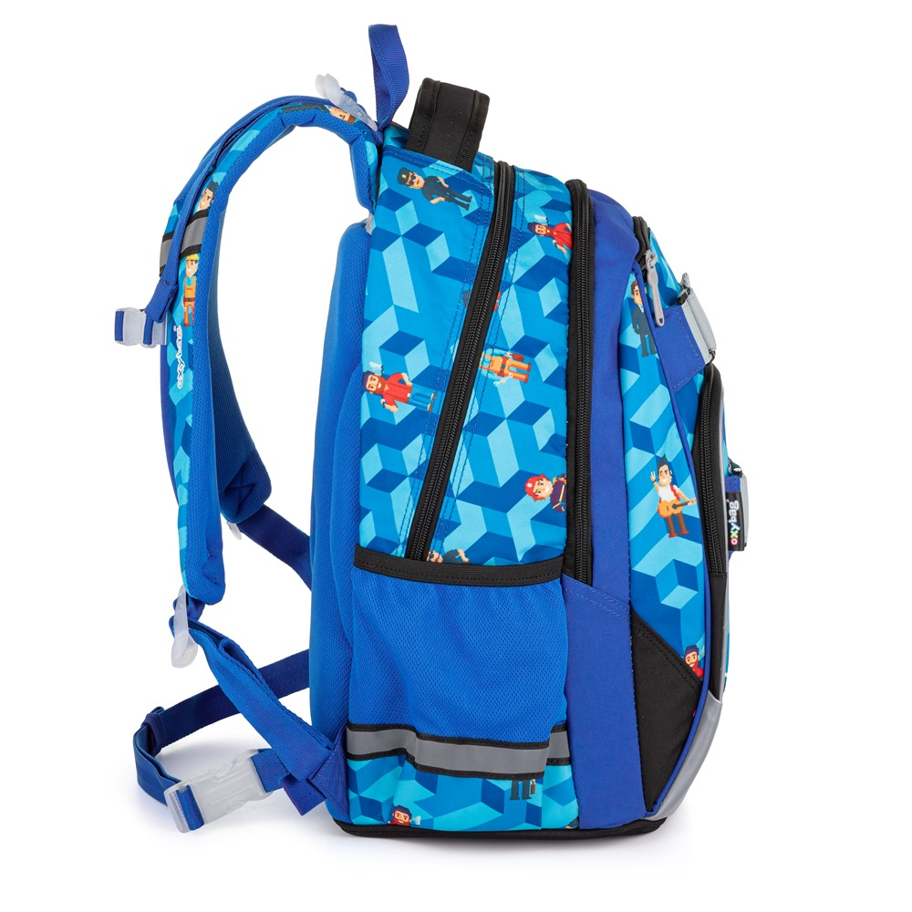 Školní batoh z řady OXY STYLE Mini na sebe jednoduše strhne pozornost. Určitě oceníte jeho promyšlený vnější design: sympatický tvar, anatomicky tvarovaná a prodyšná záda, přední kapsu na zip i extra boční kapsy.