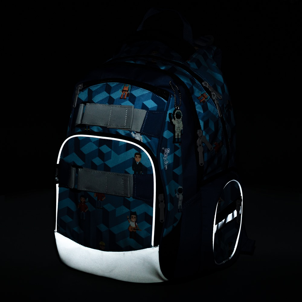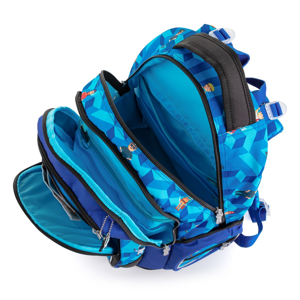 Jeho vnitřní členění si zamilujete: 2 oddělené komory, praktická kapsa na notebook velikosti 12“, menší kapsa na tablet, nebo čtečku do velikosti 10“ a jako bonus menší kapsa s organizérem na různé školní drobnosti.