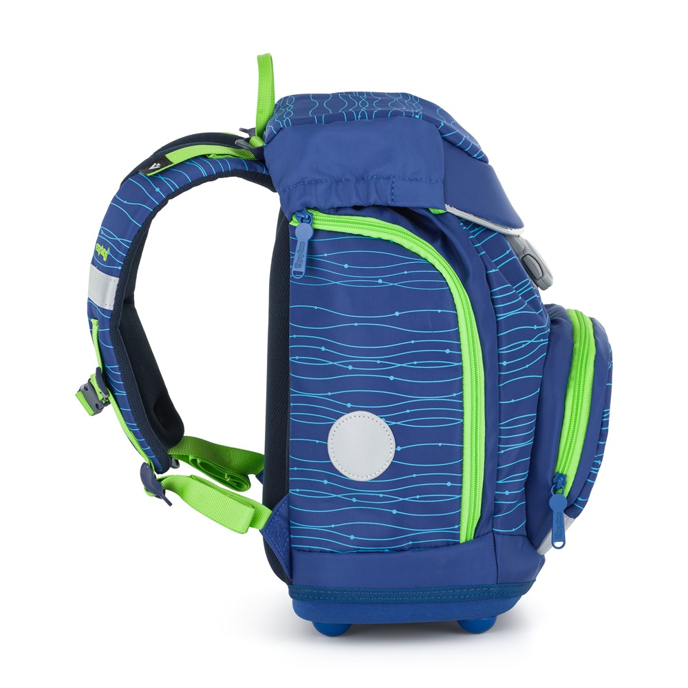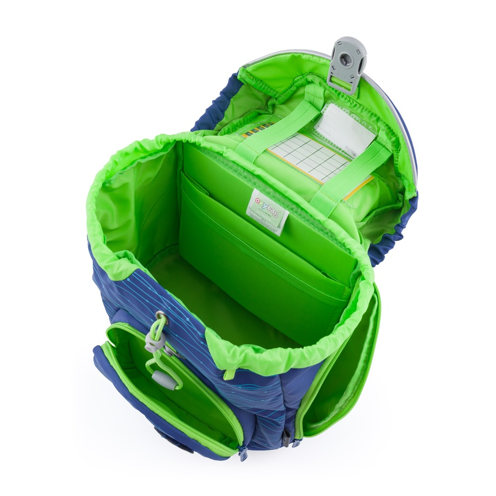 Výhodný set batohu, penálu, sáčku na cvičky a vyměnitelných placek. Školní batoh z řady OXY Sherpy je ideální volbou pro děti od 1. do 3. třídy. Batoh má anatomicky tvarovaný zádový panel, polstrované ramenní popruhy a nastavitelný hrudní popruh, což zajišťuje pohodlí a správné držení těla. Pevné dno opatřené plastovými nožkami zabraňuje převrhnutí a umožňuje batohu stát samostatně. Vnitřní rozřaďovač pomáhá udržet pořádek, zatímco zapínání hlavní komory na stahovací šňůrku a magnetické zapínání je praktické a snadno ovladatelné jednou rukou. Boční kapsy na zip jsou ideální na lahev s pitím, přední kapsa na svačinu poskytuje další úložný prostor. Nechybí reflexní prvky pro větší bezpečnost dítěte. Díky vyměnitelným plackám na suchý zip si může každý školák přizpůsobit design batohu podle svého vkusu. Batoh je doporučen pro děti vysoké od 121 cm. Délka zádového panelu je 33 cm, objem činí 28 l, hmotnost batohu je 950 g a jeho nosnost je 10 kg.