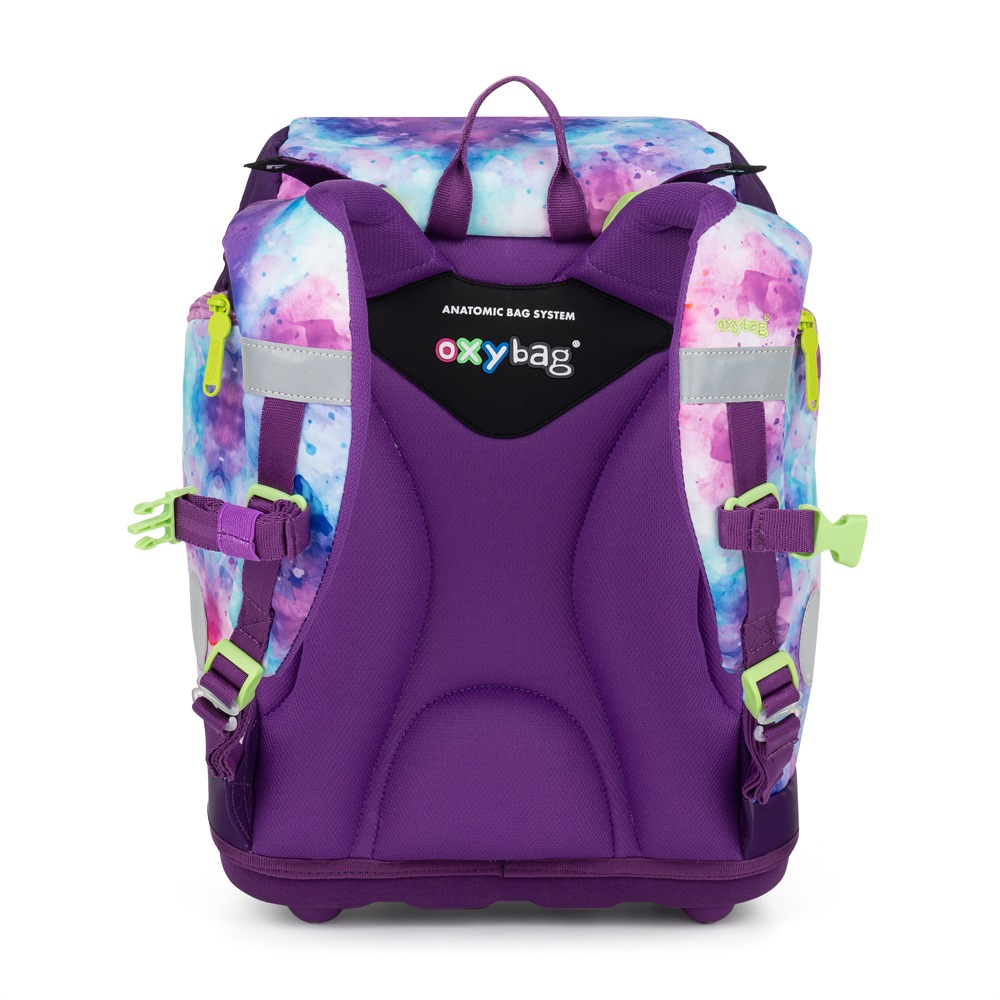 Výhodný set batohu, penálu, sáčku na cvičky a vyměnitelných placek. Školní batoh z řady OXY Sherpy je ideální volbou pro děti od 1. do 3. třídy. Batoh má anatomicky tvarovaný zádový panel, polstrované ramenní popruhy a nastavitelný hrudní popruh, což zajišťuje pohodlí a správné držení těla. Pevné dno opatřené plastovými nožkami zabraňuje převrhnutí a umožňuje batohu stát samostatně. Vnitřní rozřaďovač pomáhá udržet pořádek, zatímco zapínání hlavní komory na stahovací šňůrku a magnetické zapínání je praktické a snadno ovladatelné jednou rukou. Boční kapsy na zip jsou ideální na lahev s pitím, přední kapsa na svačinu poskytuje další úložný prostor. Nechybí reflexní prvky pro větší bezpečnost dítěte. Díky vyměnitelným plackám na suchý zip si může každý školák přizpůsobit design batohu podle svého vkusu. Batoh je doporučen pro děti vysoké od 121 cm. Délka zádového panelu je 33 cm, objem činí 28 l, hmotnost batohu je 950 g a jeho nosnost je 10 kg.