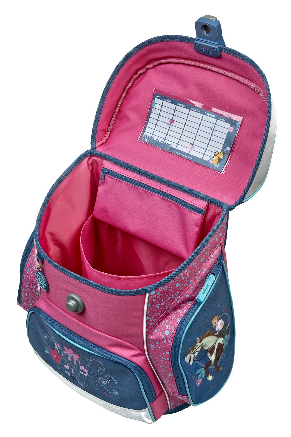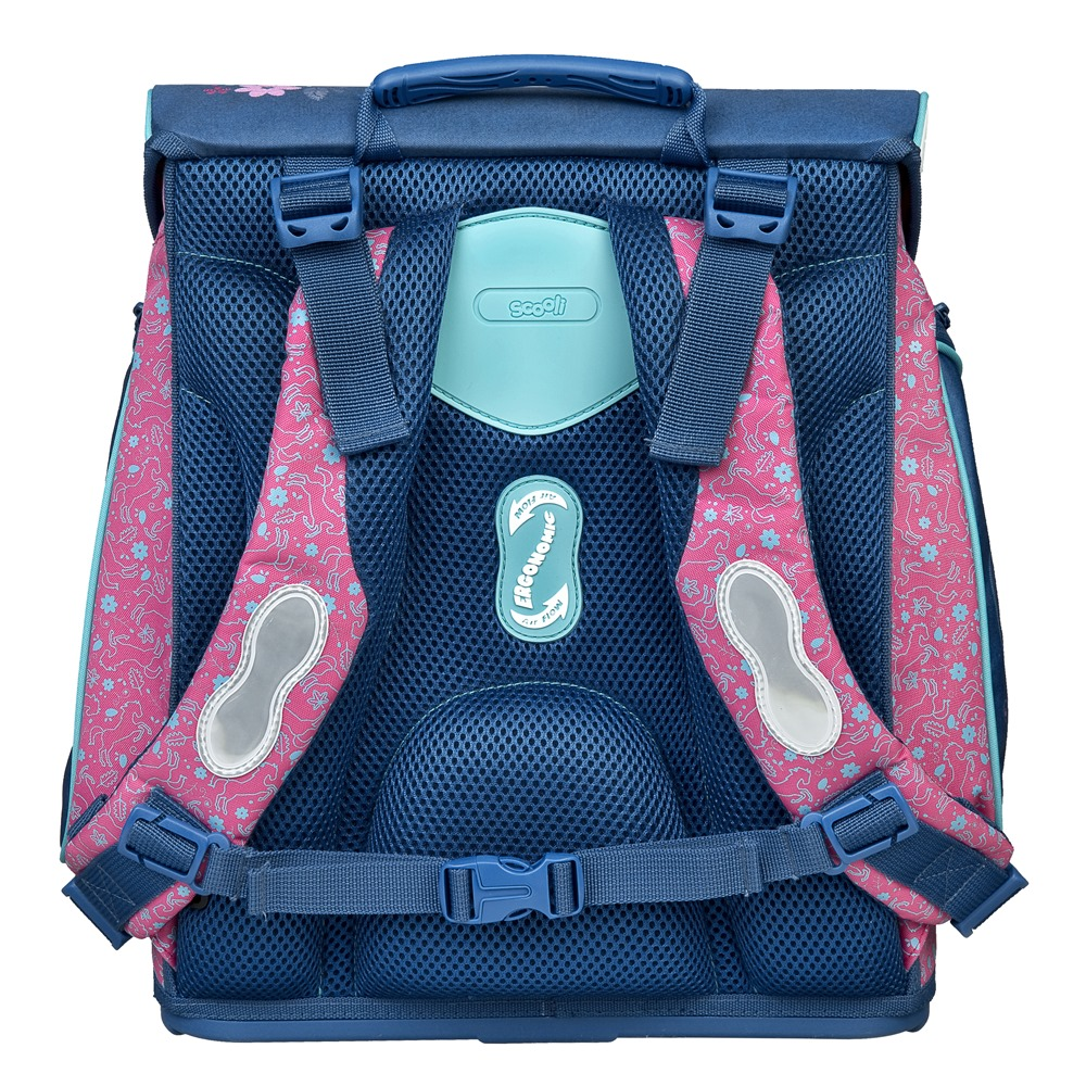 Školní aktovka Scooli s motivem Spirit je anatomicky tvarovaná a zajišťuje tak správné usazení na zádech. Vyztužená záda a vnitřní výztuha udržují stálý tvar batohu. Polstrování je z příjemného prodyšného materiálu, široké měkčené popruhy jsou navrženy tak, aby dokonale přilnuly a rovnoměrně zatížily ramena dítěte. Aktovka se skládá z jedné prostorné komory, kam se pohodlně vejdou všechny školní pomůcky pro děti v 1. a ve 2. třídě. Dno batohu je z pevného materiálu, chrání tím obsah před převržením a vysypáním. Zapínání je na bezpečnostní přezku. Přední kapsička je určena na svačinu, nechybí řada reflexních prvků, díky kterým je aktovka viditelnější.
