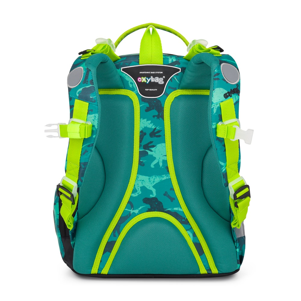 Školní batoh z řady OXY GO na sebe jednoduše strhne pozornost. Designové provedení zaujme každého školáka. Perfektní tvar batohu ukrývá nejen anatomicky tvarovaná a prodyšná záda, ale také možnost nastavit si ramenní popruhy pro lepší pohodlí a komfortnější nošení. Navíc je batoh opatřen přidávnými háčky pro uchycení dlouhých popruhů. Dvě vnitřní kapsy nabízí dostatek prostoru pro učebnice, sešity i věci na volný čas. Pevné nepromokavé dno zabraňuje jak ušpinění zvenku, tak protečení čehokoliv, co se vylije uvnitř. Po stranách najdete dvě menší kapsy, jednu otevřenou a druhou na zip. Batoh nabízí velkorysé množství nejrůznějších kapes, ať už velkých nebo i malých. Lehký, přitom dostatečně velký pro všechny věci, které chce mít každý školák po ruce. Mysleli jsme také na bezpečnost vašich dětí, proto batohu nechybějí reflexní prvky. Batoh je ideální na první stupeň do 1. - 3. třídy pro děti vysoké od 125 cm. Délka zádového panelu je 39 cm, objem činí 22 l, hmotnost batohu je 930 g a jeho nosnost je 8 kg.