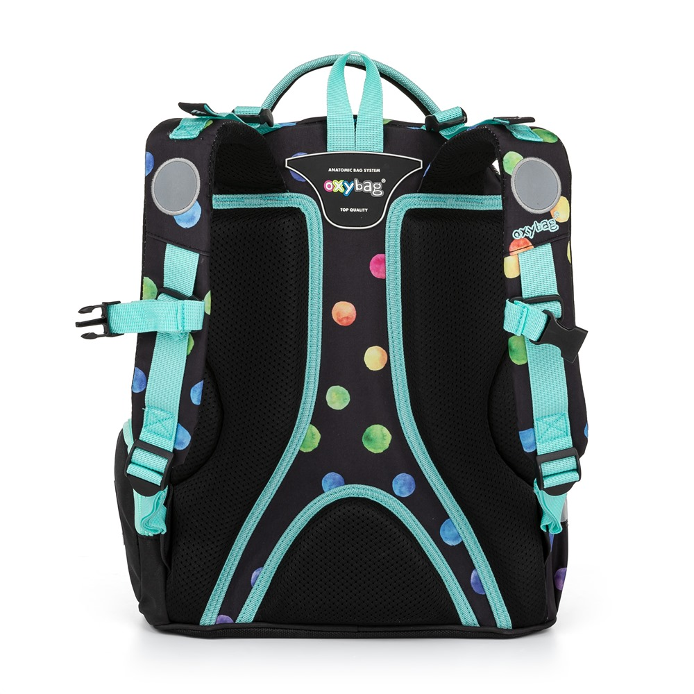 Školní batoh z řady OXY GO na sebe jednoduše strhne pozornost. Designové provedení zaujme každého kluka i holku. Perfektní tvar batohu ukrývá nejen anatomicky tvarovaná a prodyšná záda, ale také možnost nastavit si ramenní popruhy pro lepší pohodlí a komfortnější nošení. Dvě vnitřní kapsy nabízí dostatek prostoru pro učebnice, sešity i věci na volný čas. Pevné dno zabraňuje jak ušpinění zvenku, tak protečení čehokoliv, co se vylije uvnitř. Po stranách najdete dvě větší kapsy. Batoh nabízí velkorysé množství nejrůznějších kapes, ať už velkých nebo i malých. Hledání klíčů v batohu proto nehrozí. Lehký, přitom dostatečně velký pro všechny věci, které chce mít každý školák po ruce. Mysleli jsme také na bezpečnost vašich dětí, proto batohu nechybějí reflexní prvky. Batoh je ideální na první stupeň 1. - 3. třídu pro děti vysoké od 125 cm.