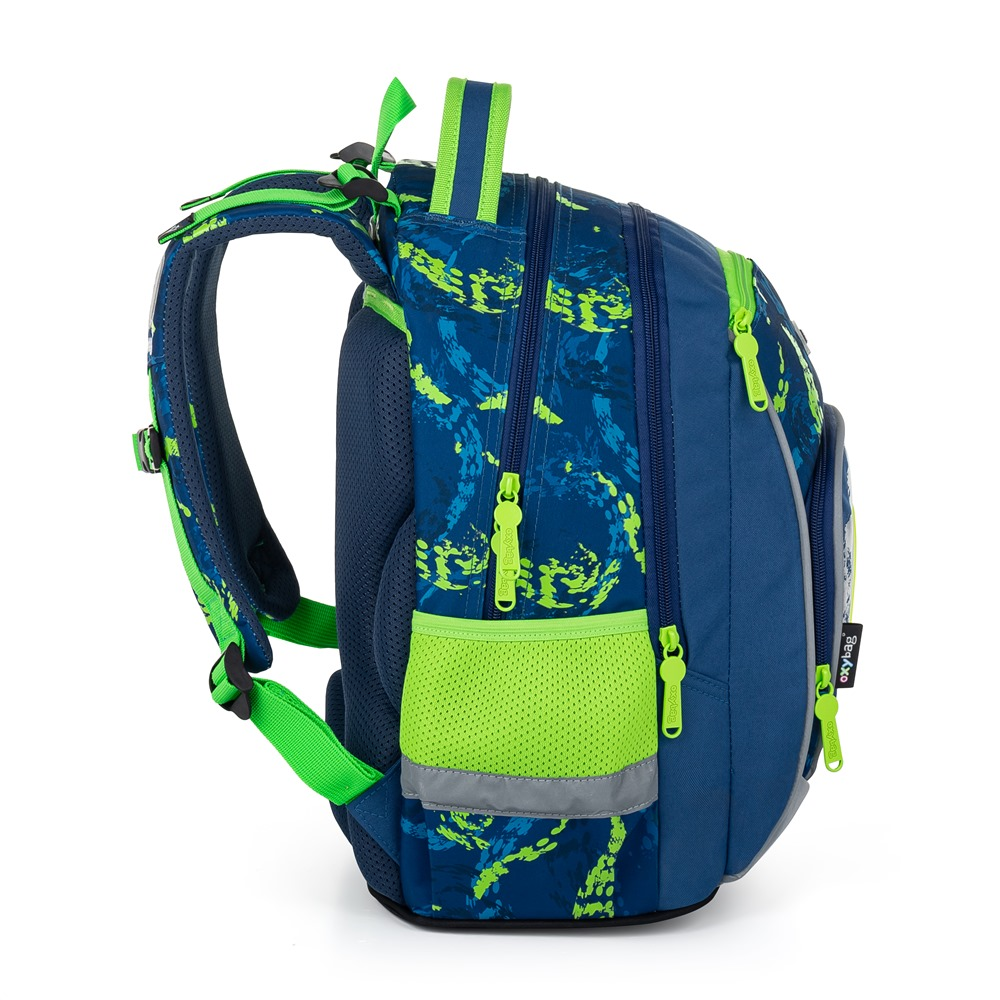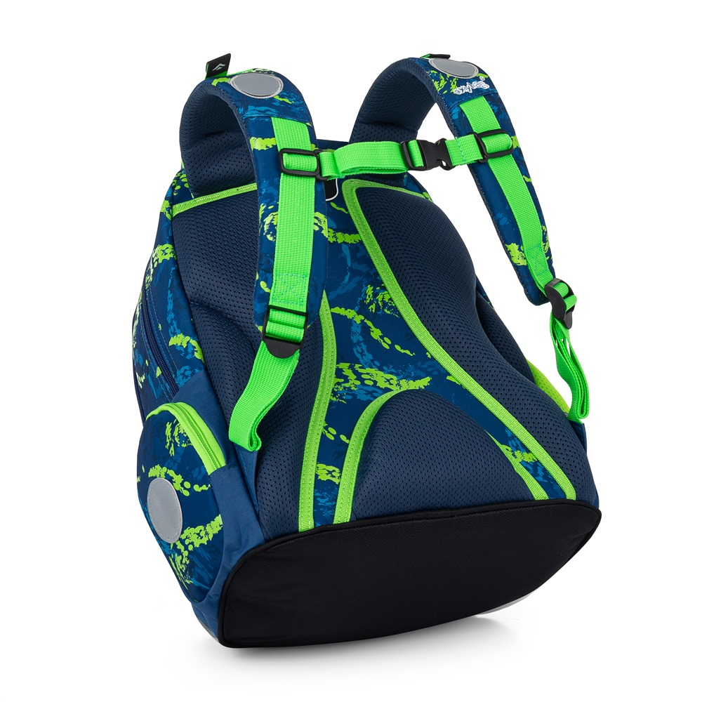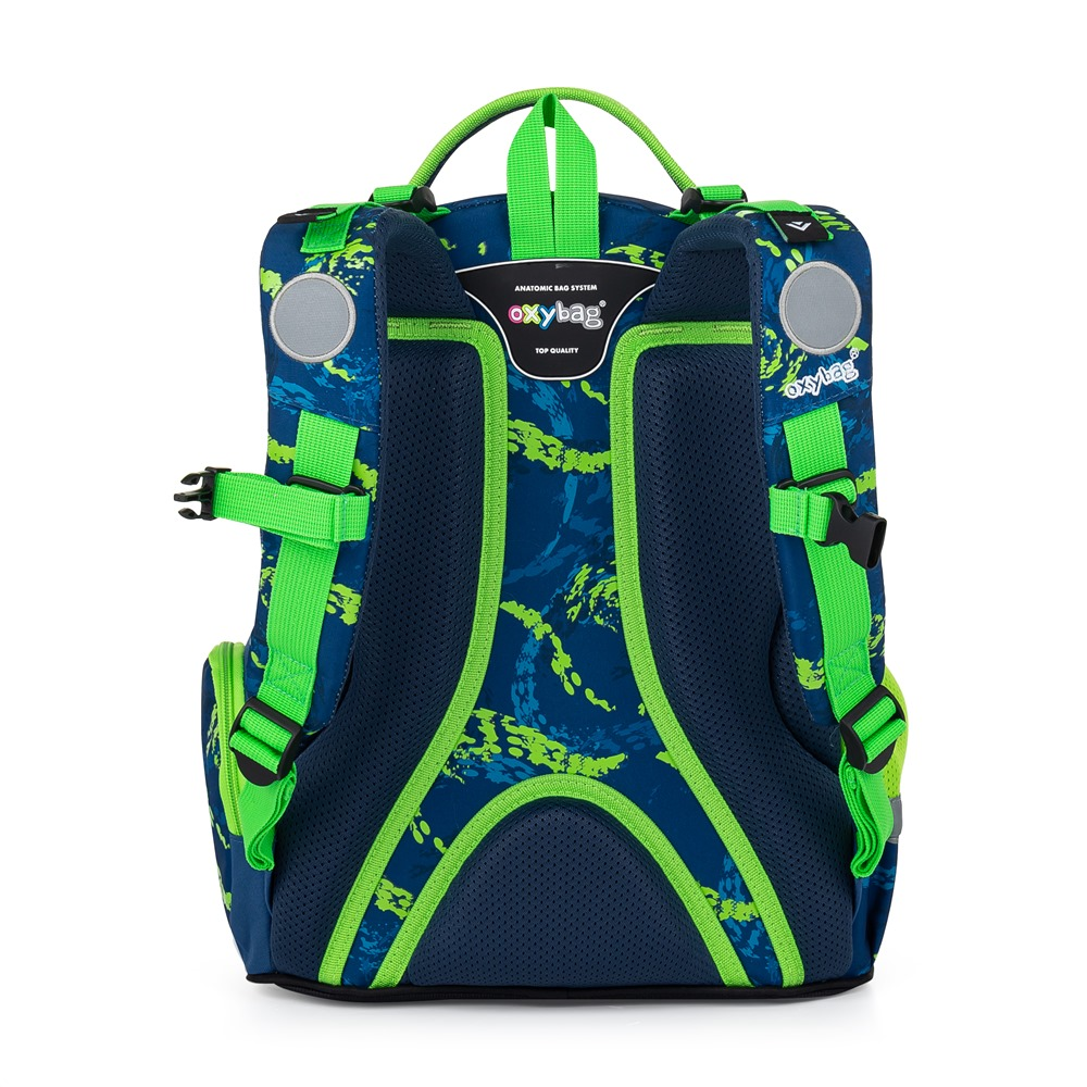 Školní batoh z řady OXY GO na sebe jednoduše strhne pozornost. Designové provedení zaujme každého kluka i holku. Perfektní tvar batohu ukrývá nejen anatomicky tvarovaná a prodyšná záda, ale také možnost nastavit si ramenní popruhy pro lepší pohodlí a komfortnější nošení. Dvě vnitřní kapsy nabízí dostatek prostoru pro učebnice, sešity i věci na volný čas. Pevné dno zabraňuje jak ušpinění zvenku, tak protečení čehokoliv, co se vylije uvnitř. Po stranách najdete dvě větší kapsy. Batoh nabízí velkorysé množství nejrůznějších kapes, ať už velkých nebo i malých. Hledání klíčů v batohu proto nehrozí. Lehký, přitom dostatečně velký pro všechny věci, které chce mít každý školák po ruce. Mysleli jsme také na bezpečnost vašich dětí, proto batohu nechybějí reflexní prvky. Batoh je ideální na první stupeň 1. - 3. třídu pro děti vysoké od 125 cm.