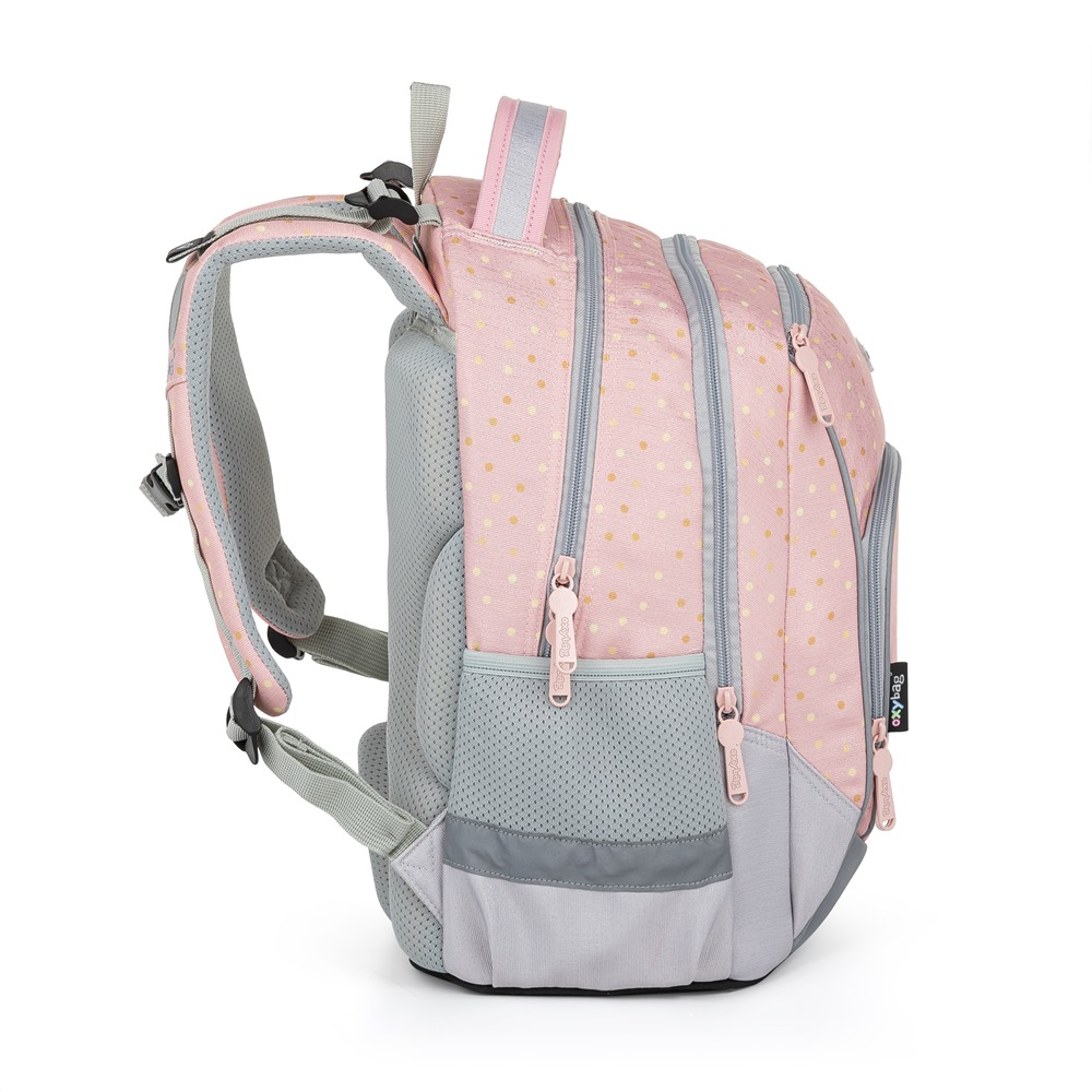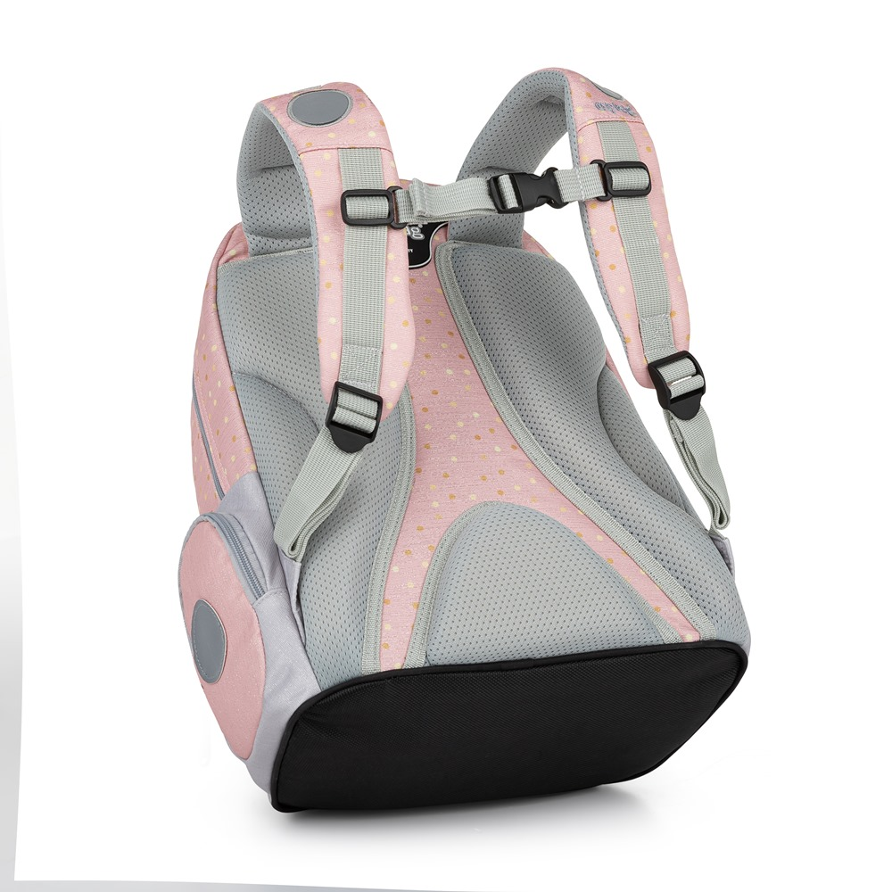 Školní batoh z řady OXY GO na sebe jednoduše strhne pozornost. Designové provedení zaujme každého školáka. Perfektní tvar batohu ukrývá nejen anatomicky tvarovaná a prodyšná záda, ale také možnost nastavit si ramenní popruhy pro lepší pohodlí a komfortnější nošení. Navíc je batoh opatřen přidávnými háčky pro uchycení dlouhých popruhů. Dvě vnitřní kapsy nabízí dostatek prostoru pro učebnice, sešity i věci na volný čas. Pevné nepromokavé dno zabraňuje jak ušpinění zvenku, tak protečení čehokoliv, co se vylije uvnitř. Po stranách najdete dvě menší kapsy, jednu otevřenou a druhou na zip. Batoh nabízí velkorysé množství nejrůznějších kapes, ať už velkých nebo i malých. Lehký, přitom dostatečně velký pro všechny věci, které chce mít každý školák po ruce. Mysleli jsme také na bezpečnost vašich dětí, proto batohu nechybějí reflexní prvky. Batoh je ideální na první stupeň do 1. - 3. třídy pro děti vysoké od 125 cm. Délka zádového panelu je 39 cm, objem činí 22 l, hmotnost batohu je 930 g a jeho nosnost je 8 kg.