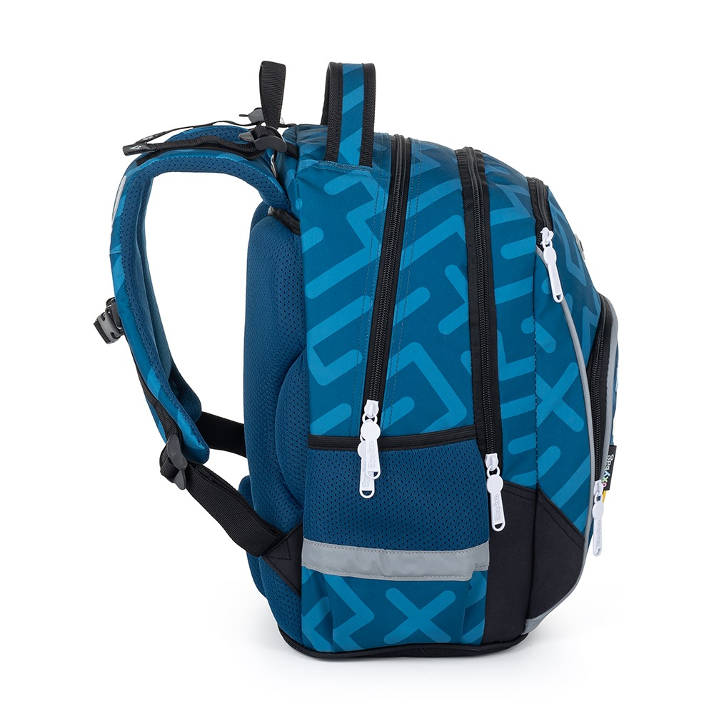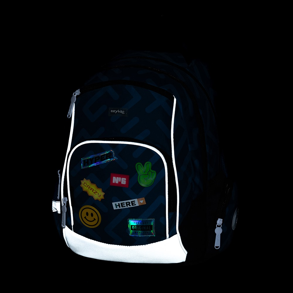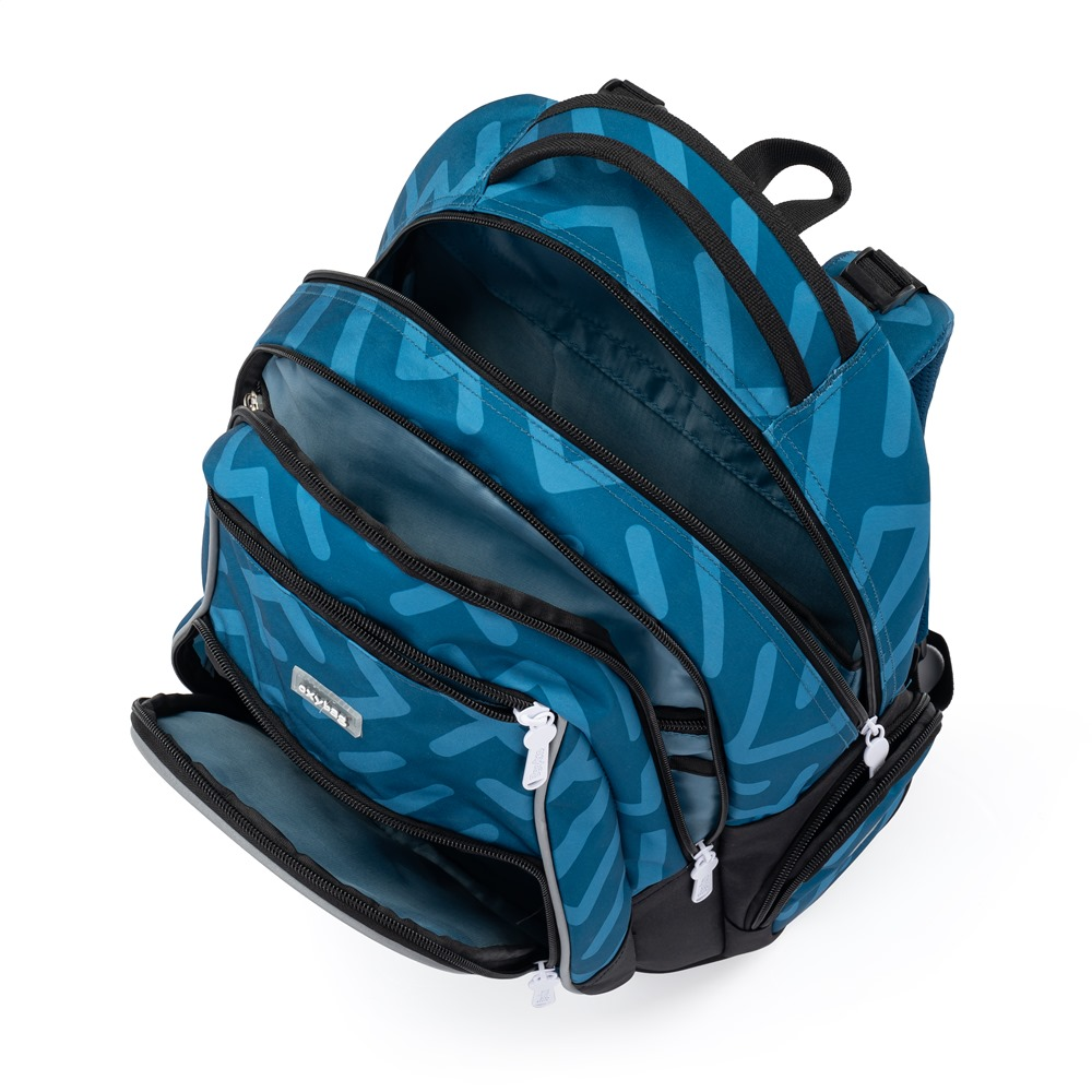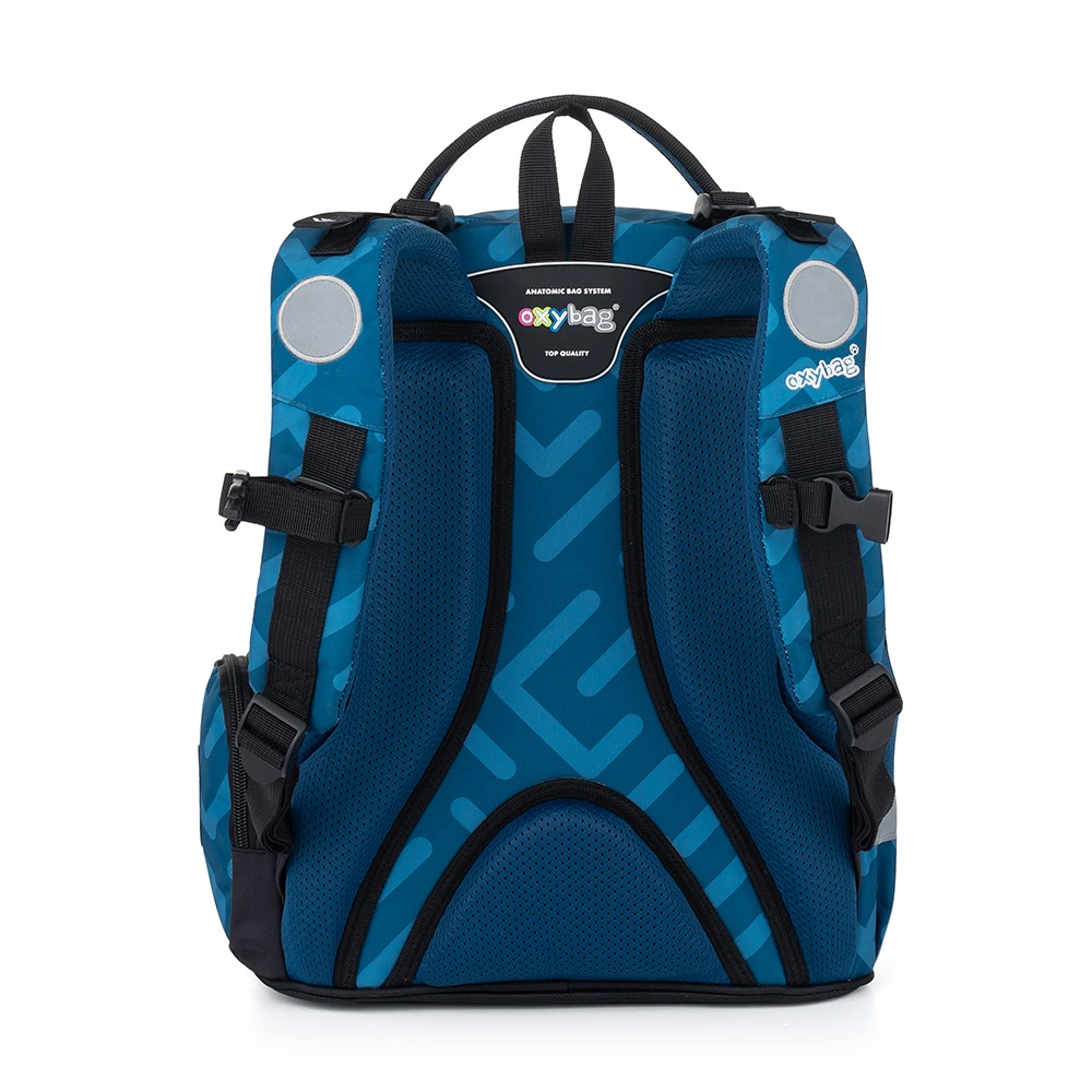 Školní batoh z řady OXY GO na sebe jednoduše strhne pozornost. Designové provedení zaujme každého kluka i holku. Perfektní tvar batohu ukrývá nejen anatomicky tvarovaná a prodyšná záda, ale také možnost nastavit si ramenní popruhy pro lepší pohodlí a komfortnější nošení. Dvě vnitřní kapsy nabízí dostatek prostoru pro učebnice, sešity i věci na volný čas. Pevné dno zabraňuje jak ušpinění zvenku, tak protečení čehokoliv, co se vylije uvnitř. Po stranách najdete dvě větší kapsy. Batoh nabízí velkorysé množství nejrůznějších kapes, ať už velkých nebo i malých. Hledání klíčů v batohu proto nehrozí. Lehký, přitom dostatečně velký pro všechny věci, které chce mít každý školák po ruce. Mysleli jsme také na bezpečnost vašich dětí, proto batohu nechybějí reflexní prvky. Batoh je ideální na první stupeň 1. - 3. třídu pro děti vysoké od 125 cm.