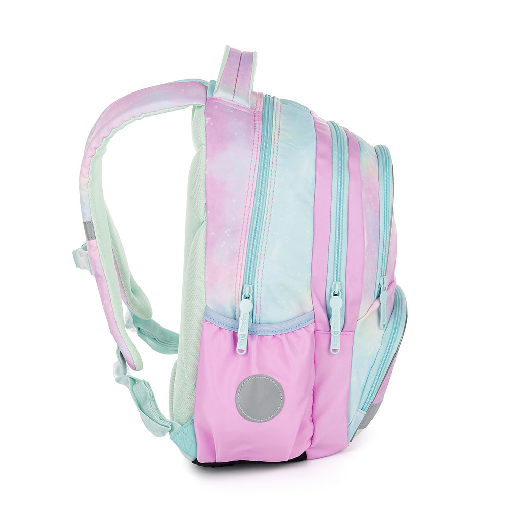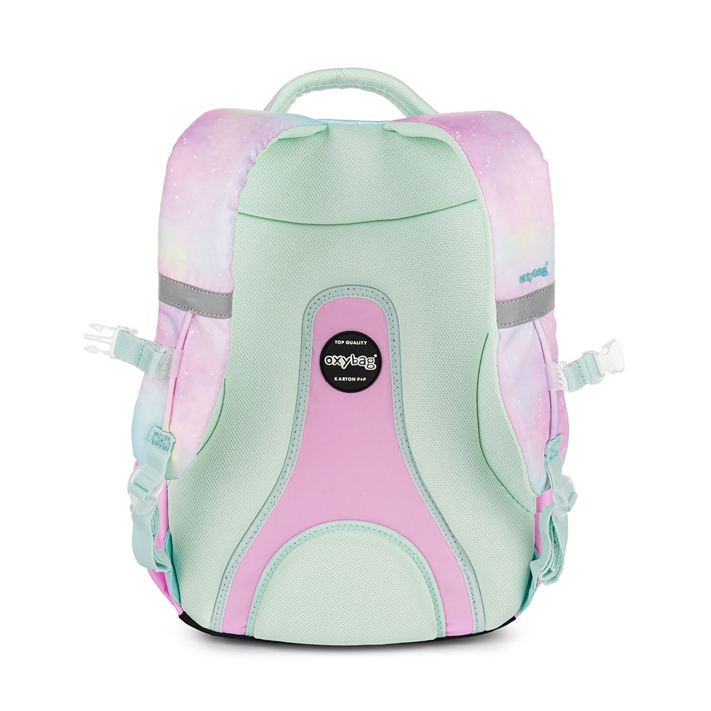 Školní batoh OXY NEXT je ideální pro děti od 2.-3.třídy ZŠ. Disponuje anatomicky tvarovanými zády, polstrovanými ramenními popruhy a hrudním popruhem. Po stranách najdete dvě větší kapsy. Ať už vaše dítě bude v batohu nosit cokoliv, nic se mu v něm neztratí, batoh totiž nabízí velkorysé množství nejrůznějších kapes, velkých nebo i malých. Hledání klíčů nehrozí, batoh obsahuje i držák na klíče nebo školní čip. Lehký, přitom dostatečně velký pro všechny věci, které chce mít každý školák po ruce. Mysleli jsme také na bezpečnost vašich dětí, batoh je vybaven velkým množstvím reflexních prvků. Dno batohu je opatřeno nepromokavým materiálem doplněným o 4 gumové nožky. Vhodné pro děti s výškou od 128 cm. Objem batohu 20l.